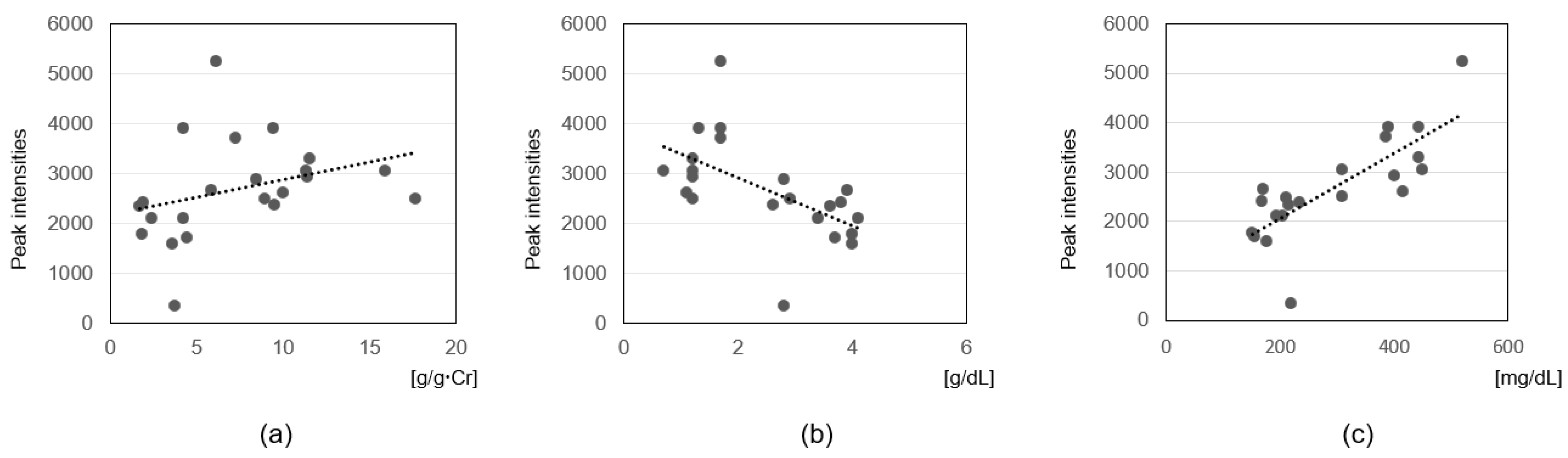 - Kanai, T.; Yamagata, T.; Ito, T.; Odaka, J.; Saito, T.; Aoyagi, J.; Momoi, M.Y. Apolipoprotein Aii Levels Are Associated with the up/Ucr Levels in Idiopathic Steroid-Sensitive Nephrotic Syndrome. Clin. Exp. Nephrol. 2015, 19, 107–113. [Google Scholar] [CrossRef]