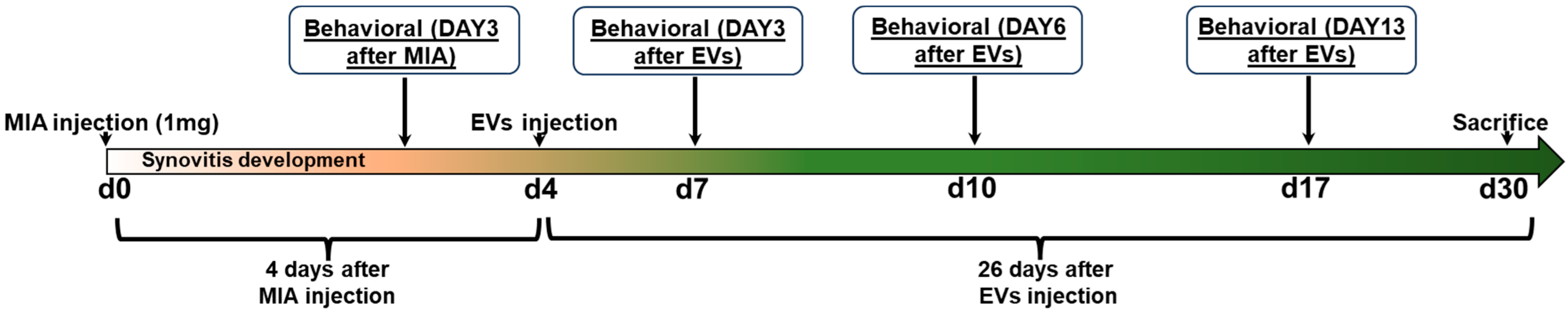 - Fu, S.; Wang, Y.; Zhou, J.; Liu, Y.; Wan, J.; Xu, L.; Wang, J.; Zhang, Z.; Wang, S. Engineered EVs from 3D-Cultured MSCs for Synergistic Modulation of Inflammatory Microenvironment and Cartilage Regeneration in Osteoarthritis. ACS Appl. Mater. Interfaces 2025, 17, 42658–42673. [Google Scholar] [CrossRef]