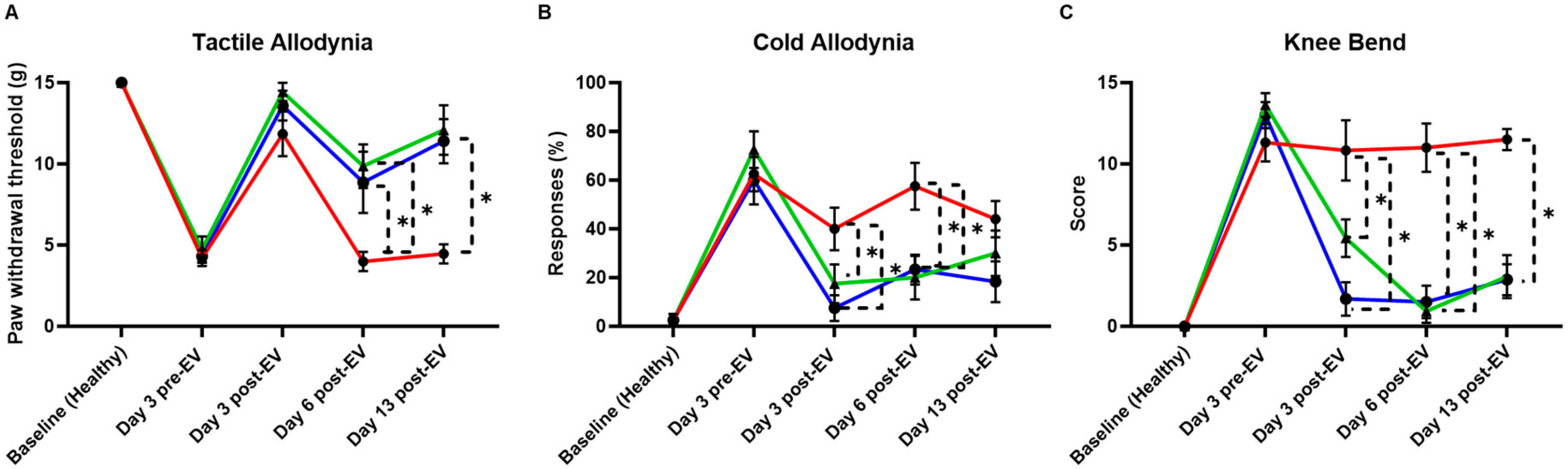 3.4. aCGRP IFP-MSC EV Effects on Pain Sensitization Assessed by Behavioral Testing