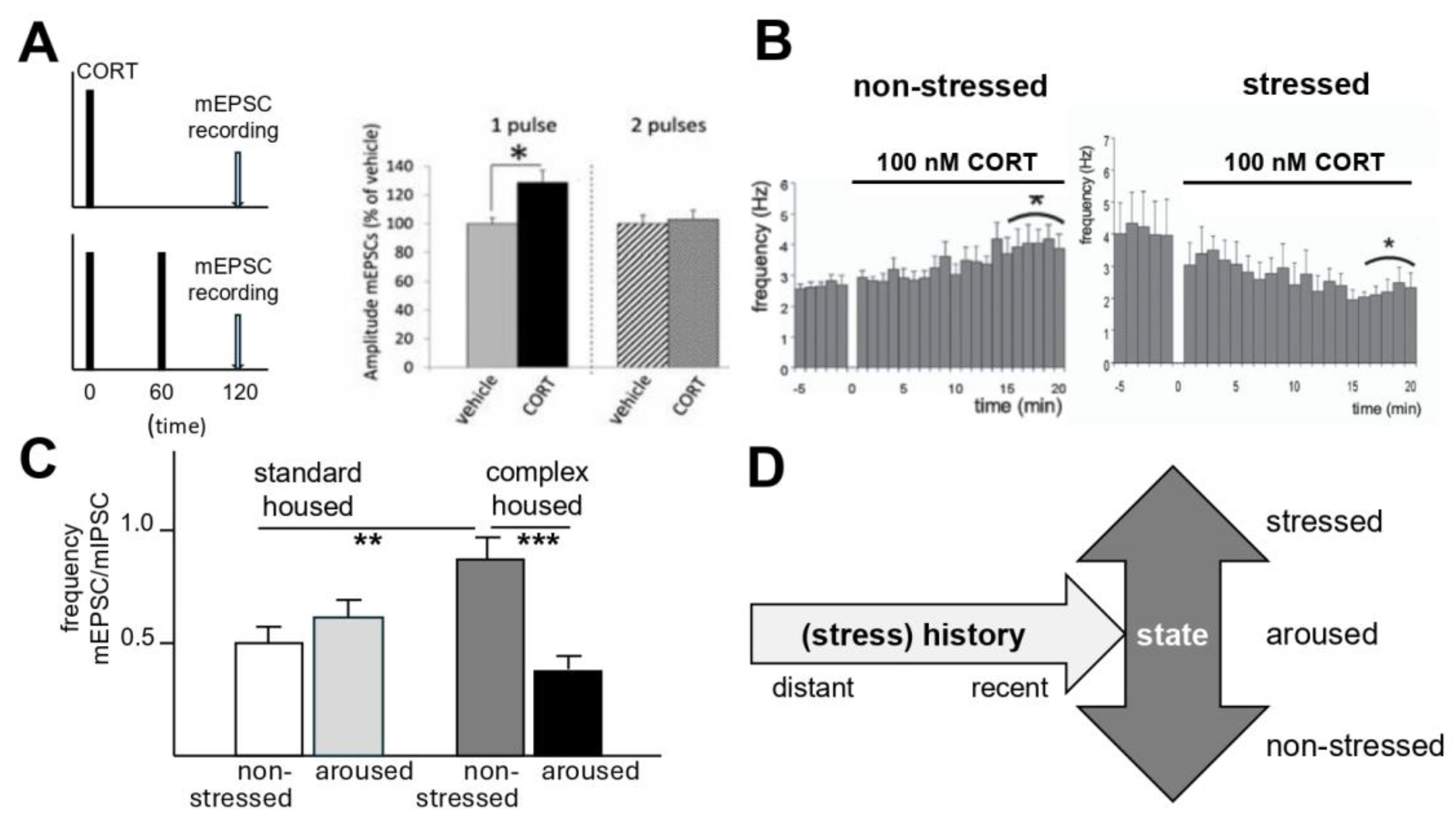 - Karst, H.; Berger, S.; Erdmann, G.; Schütz, G.; Joëls, M. Metaplasticity of amygdalar responses to the stress hormone corticosterone. Proc. Natl. Acad. Sci. USA 2010, 107, 14449–14454. [Google Scholar] [CrossRef]