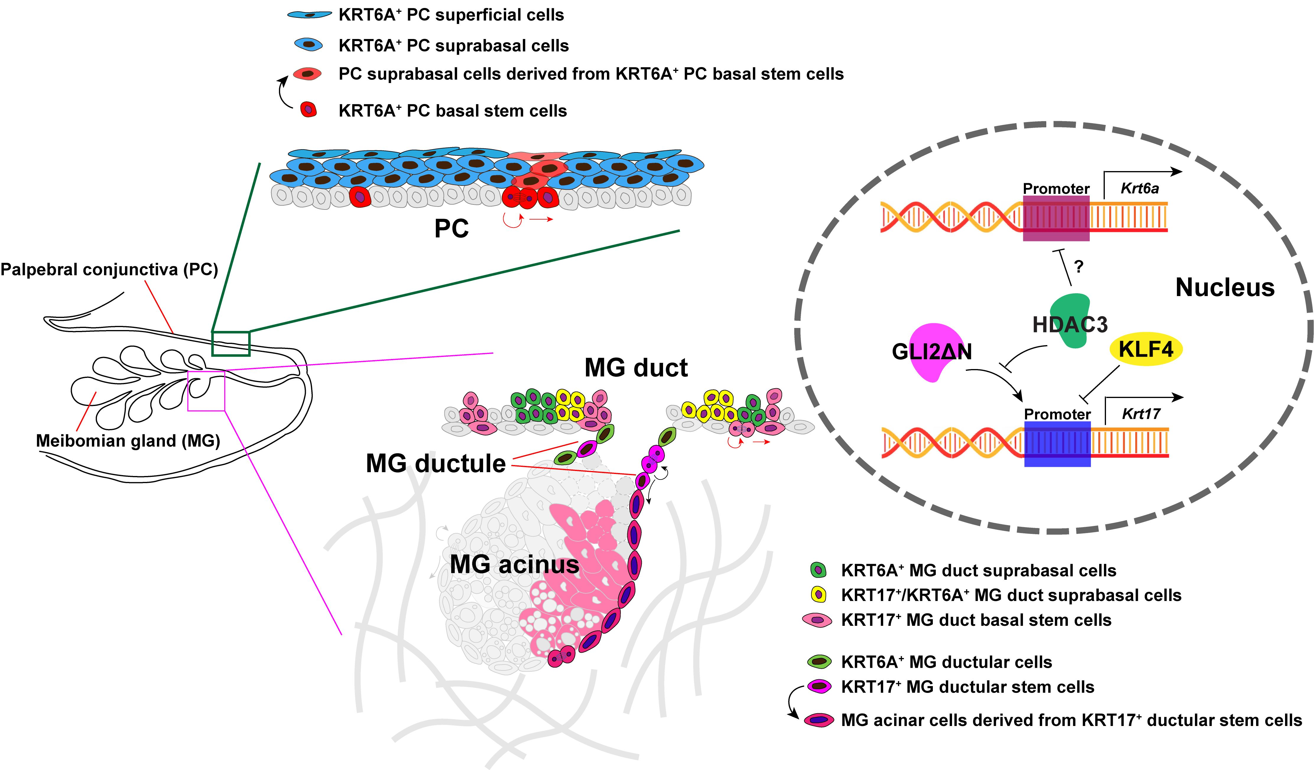 Zhu X, Xu M, Owens DM, Millar SE. KRT6A and KRT17 Mark Distinct Stem Cell Populations in the Adult Palpebral Conjunctiva and Meibomian Gland. Cells. 2025; 14(24):1979. https://doi.org/10.3390/cells14241979