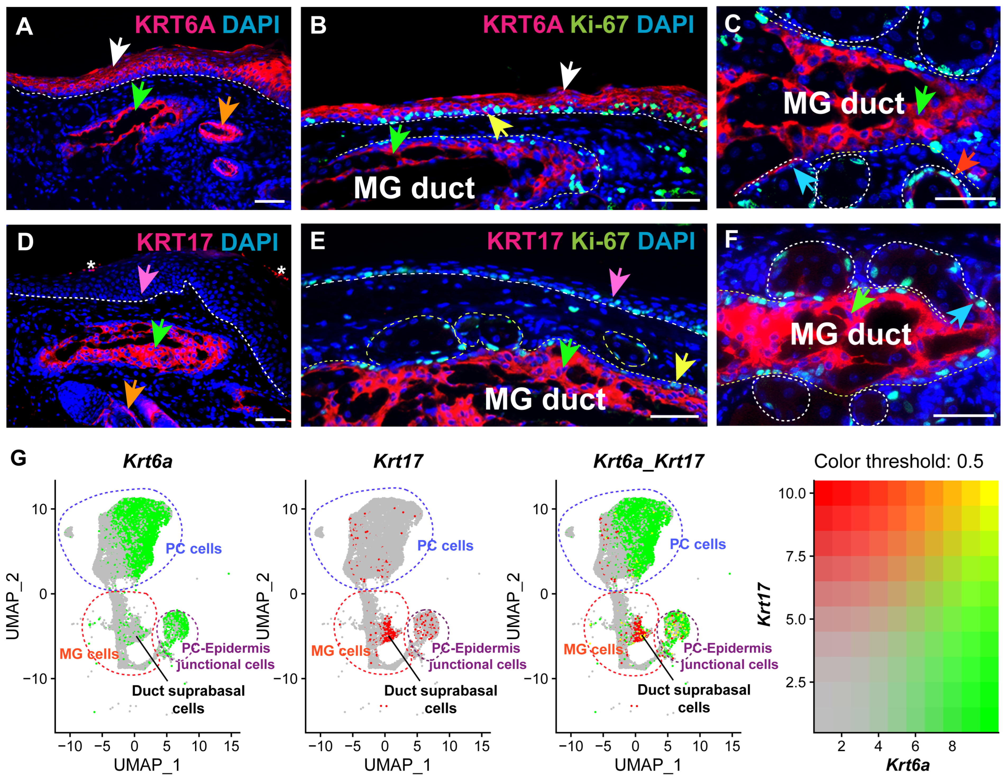 3.1. KRT6A and KRT17 Are Differentially Expressed in Adult PC and MG