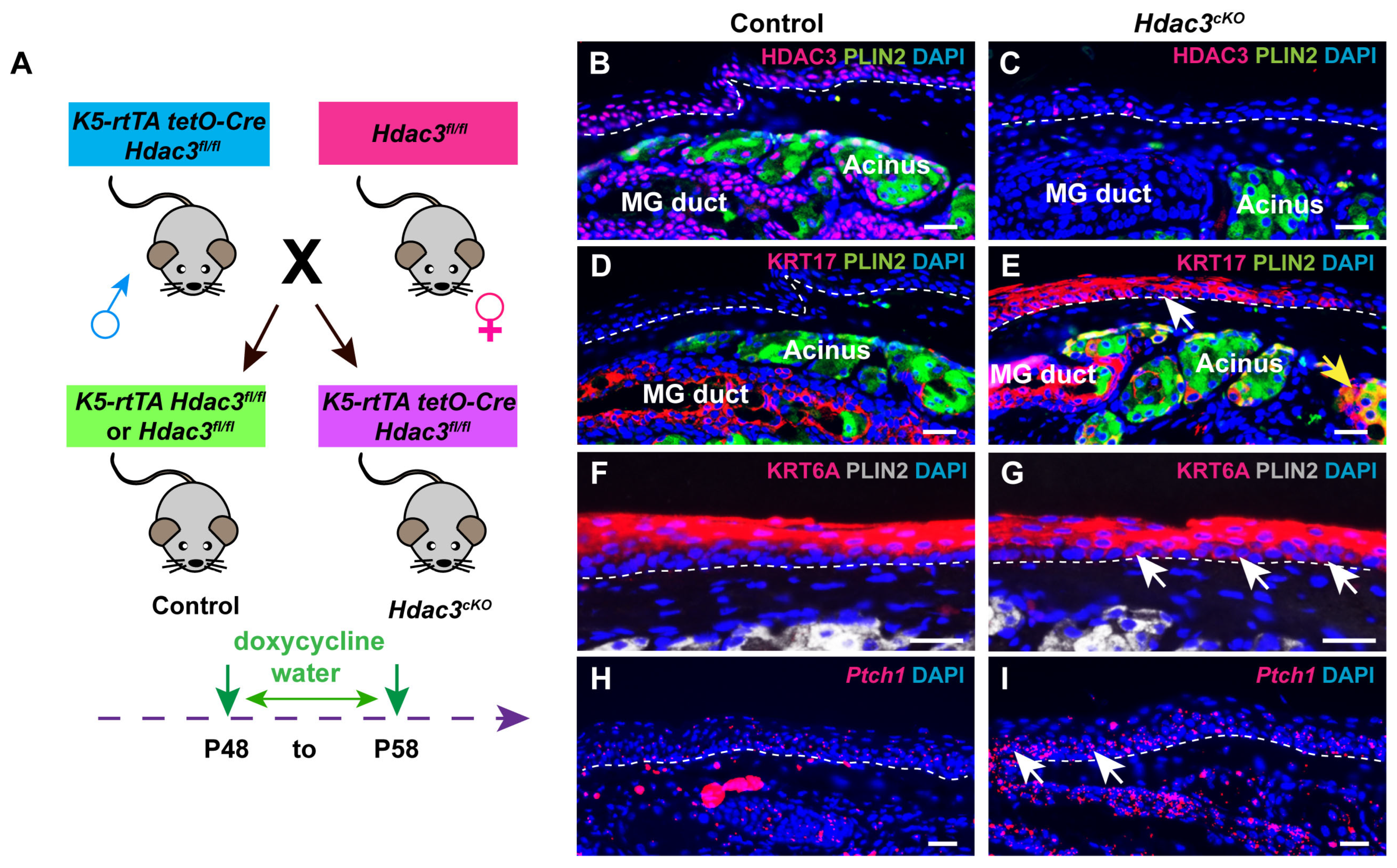 - Zhu, X.; Xu, M.; Millar, S.E. HDAC1/2 and HDAC3 play distinct roles in controlling adult Meibomian gland homeostasis. Ocul. Surf. 2024, 33, 39–49. [Google Scholar] [CrossRef]