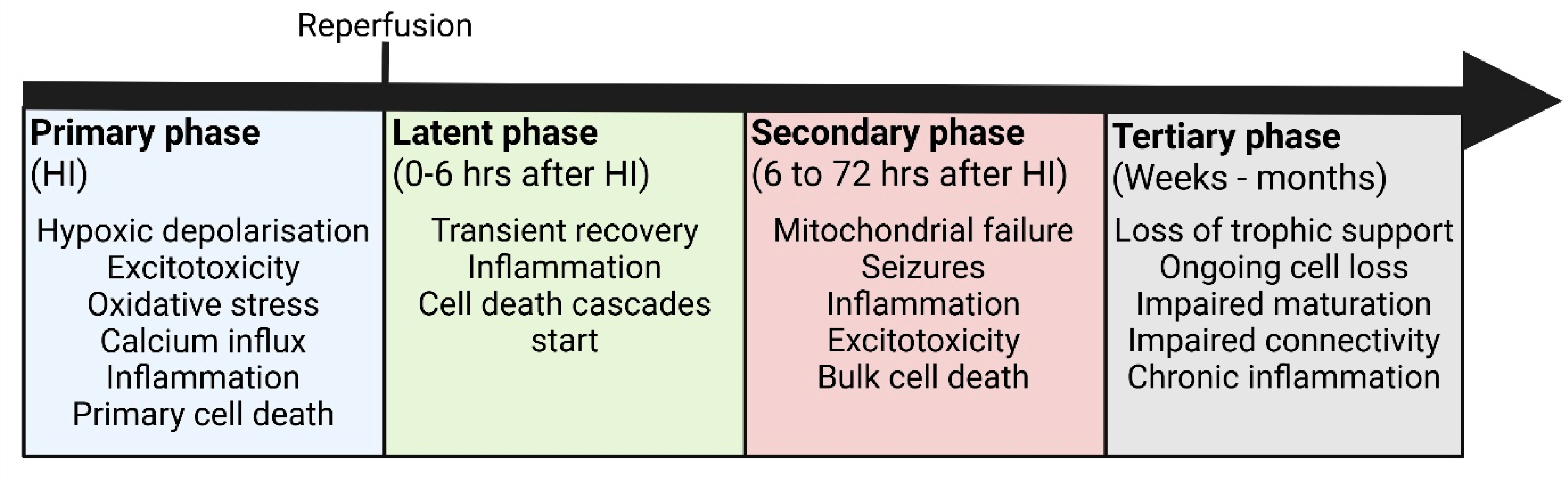 - Necroptotic signalling starts soon after hypoxia–ischaemia, remains active into the tertiary phase and is only partly suppressed by hypothermia.