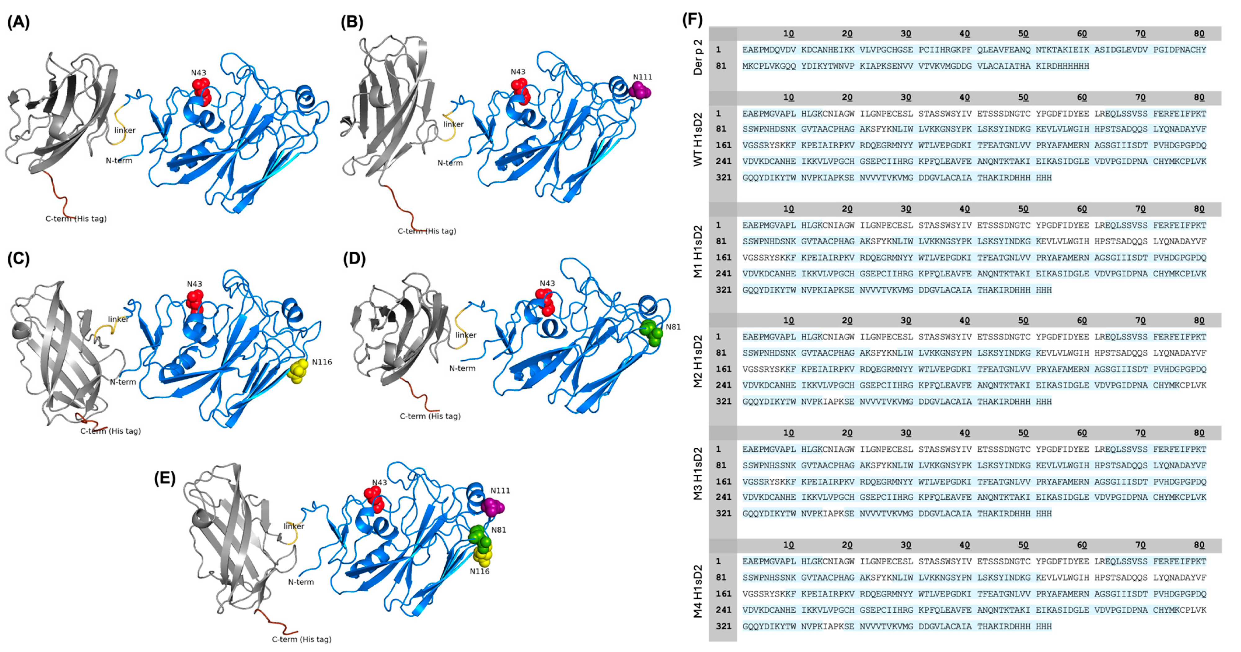 3.2. IgE Reactivity Was Preserved in All Five H1sD2 Hybrid Proteoforms