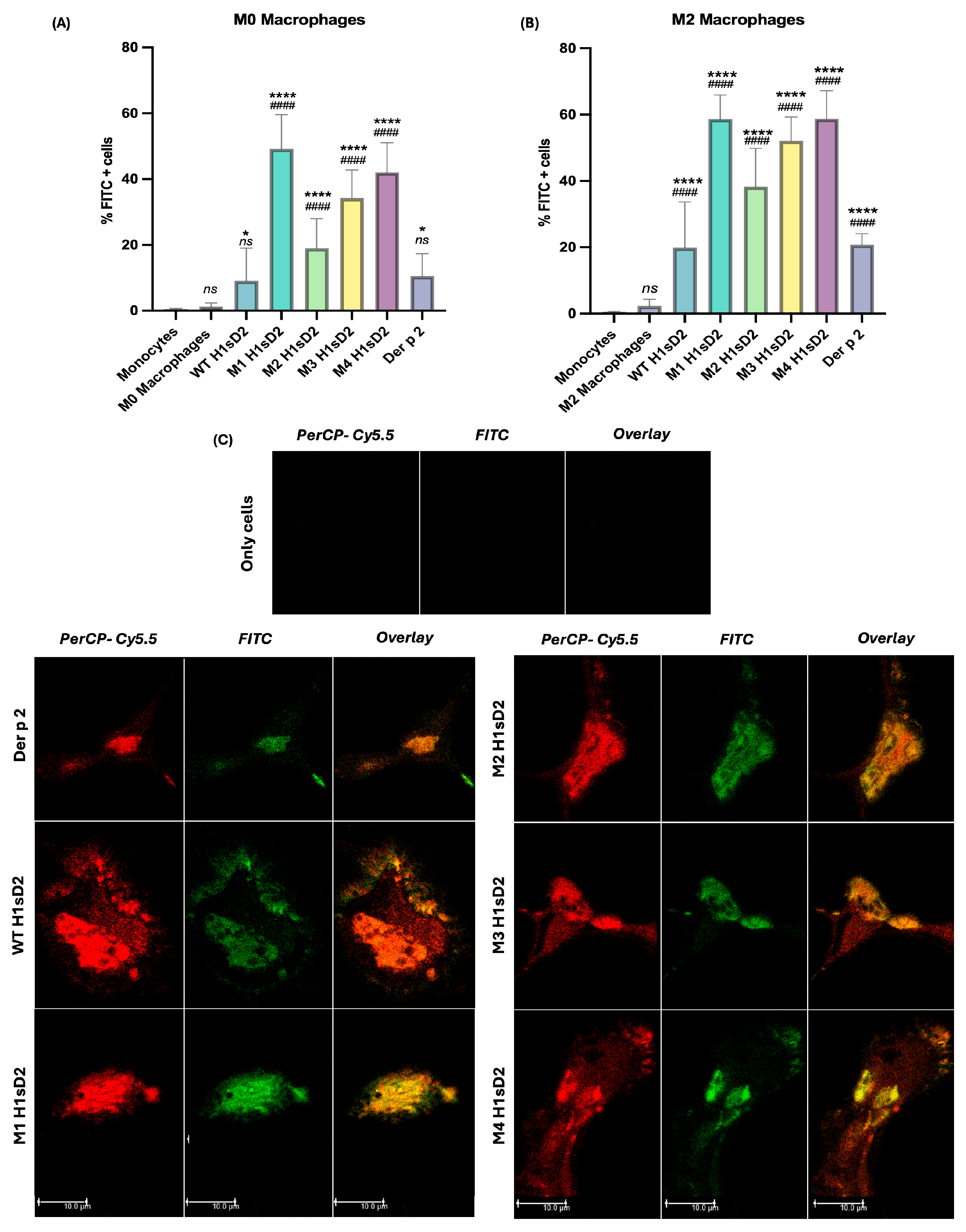 3.5. All Five FITC-Labeled H1sD2 Hybrid Proteoforms Bind to M0 and M2 THP-1-Derived Macrophages