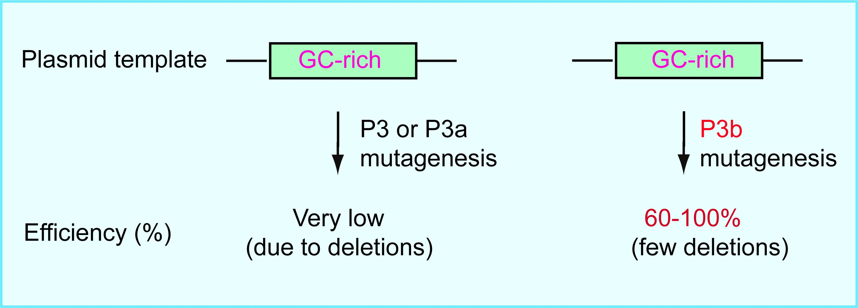 • Before embarking on site-directed mutagenesis experiments, it is recommended to analyze the GC-content distribution of template plasmids to select P3a or P3b mutagenesis.