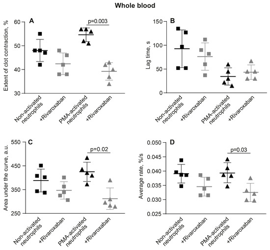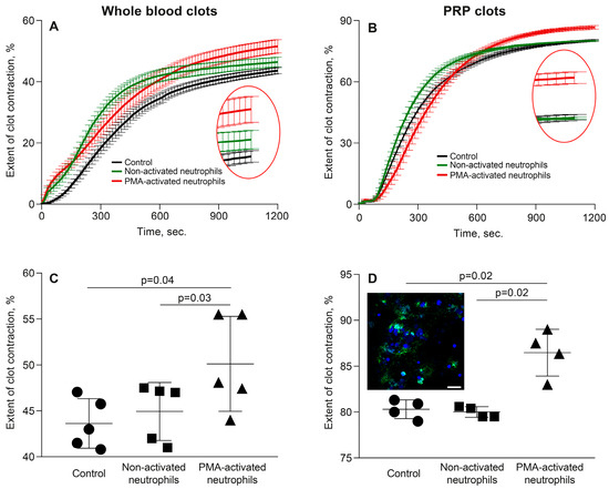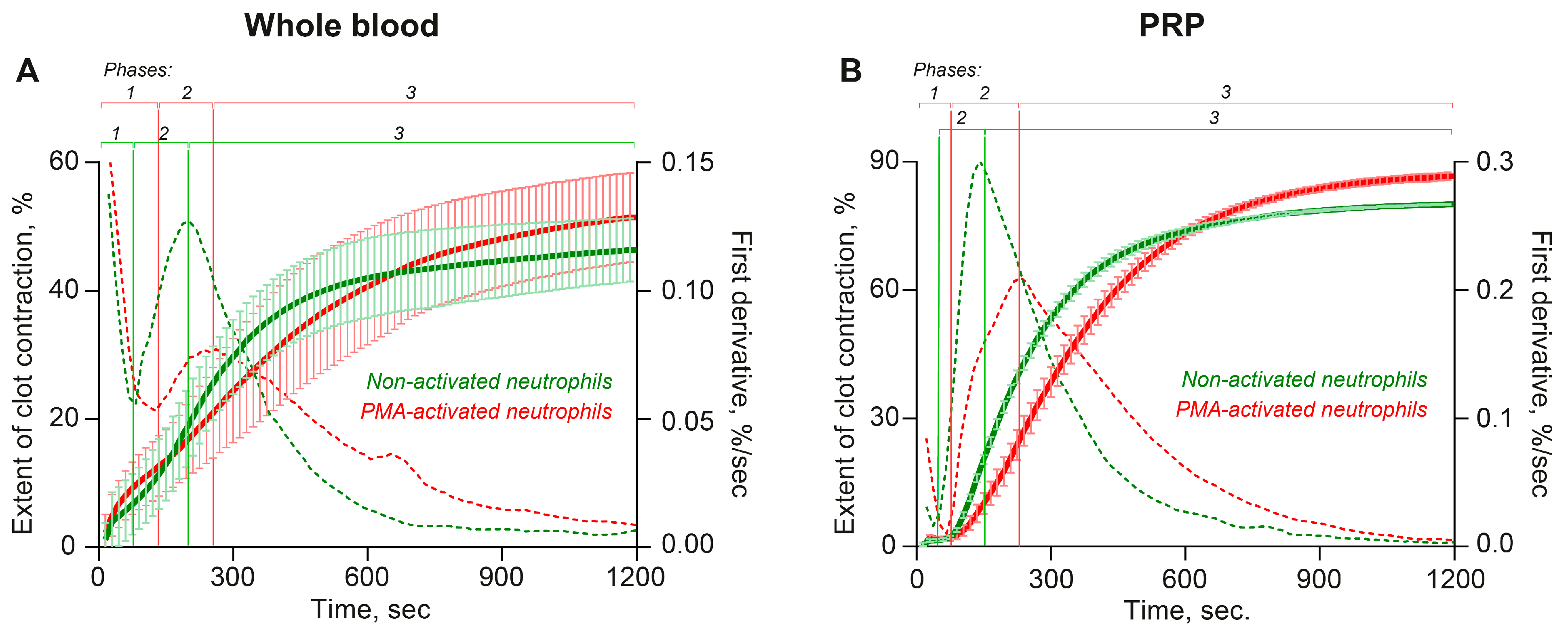 3.2. Activated Neutrophils Affect the Phase Kinetics of Clot Contraction