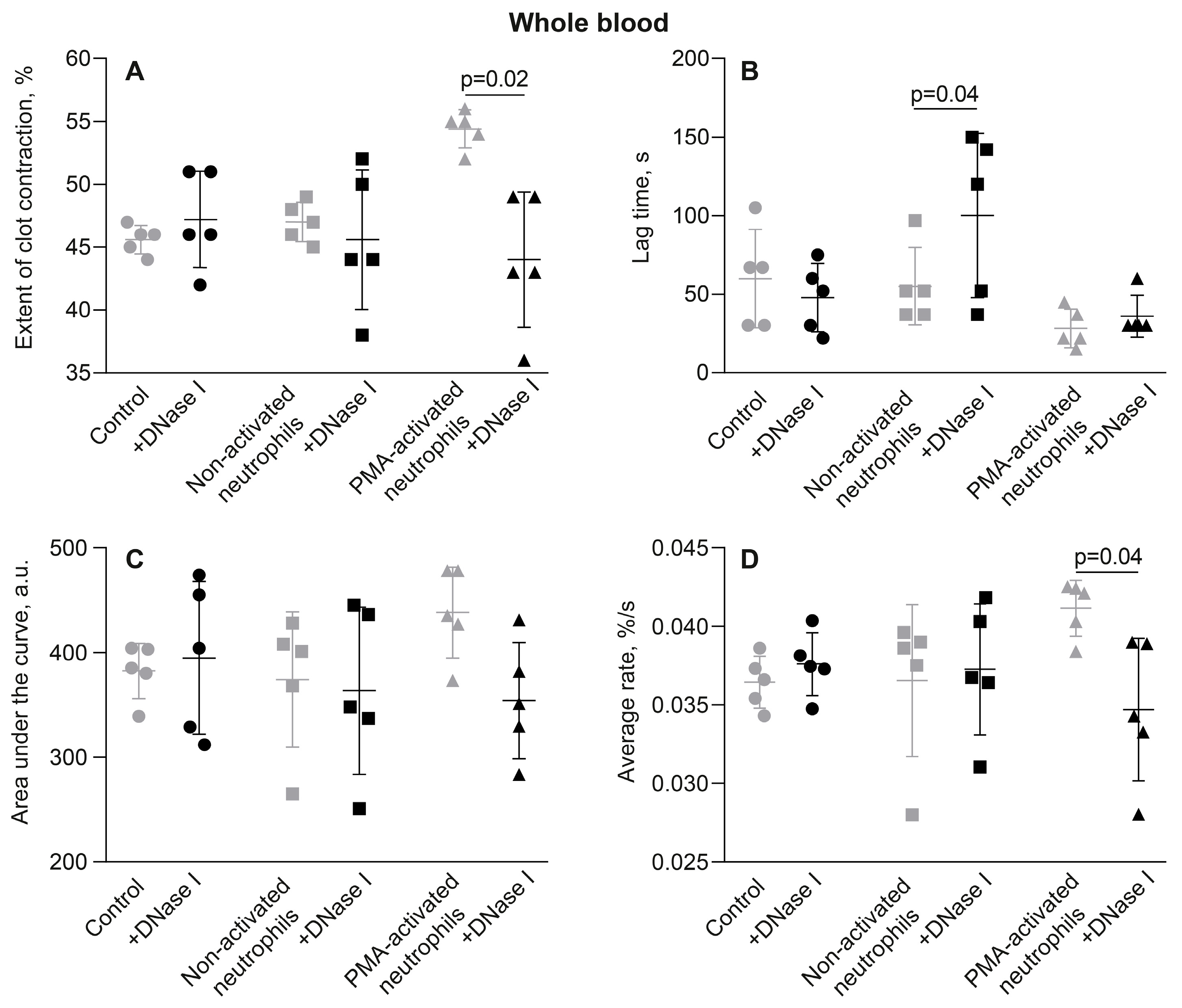 - The results obtained provide novel mechanistic insights into the pathophysiology of inflammatory thrombosis, suggesting that the presence of NETs creates a unique thrombus phenotype with enhanced contractility.
