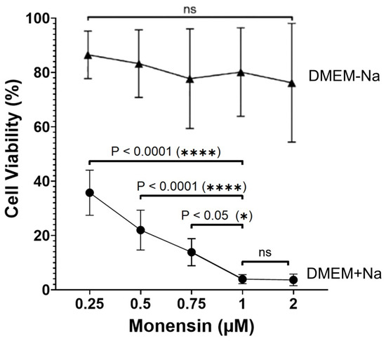 The present study investigated these issues, exploring, for the first time in a mouse in vivo model, the anticancer potential of monensin against TNBC by focusing on its ability to influence Na+ dynamics and cell viability and analyzing the possible conditions responsible for the inconsistencies of the results regarding the cytostatic or cytotoxic effects of monensin.
