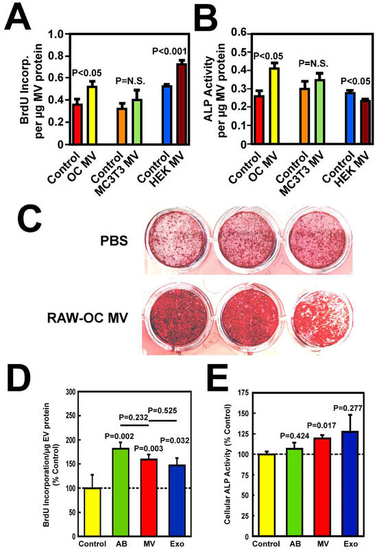 3.3. Osteoclastic MVs, but Not ABs or EXOs, Had Osteogenic Activity