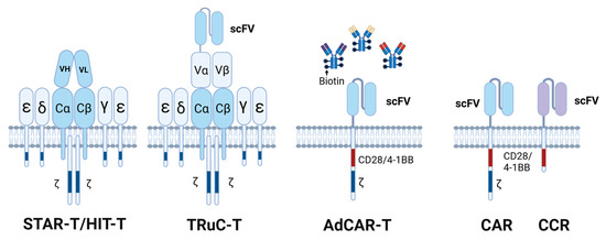 - Liu, Y.; Liu, G.; Wang, J.; Zheng, Z.Y.; Jia, L.; Rui, W.; Huang, D.; Zhou, Z.X.; Zhou, L.; Wu, X.; et al. Chimeric STAR receptors using TCR machinery mediate robust responses against solid tumors. Sci. Transl. Med. 2021, 13, eabb5191. [Google Scholar] [CrossRef]