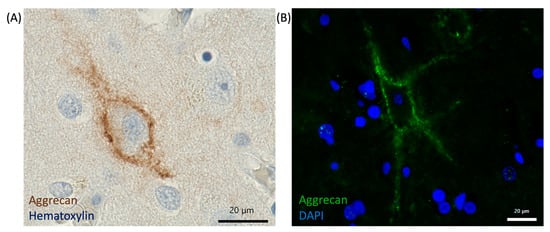 - Giamanco, K.A.; Morawski, M.; Matthews, R.T. Perineuronal Net Formation and Structure in Aggrecan Knockout Mice. Neuroscience 2010, 170, 1314–1327. [Google Scholar] [CrossRef]