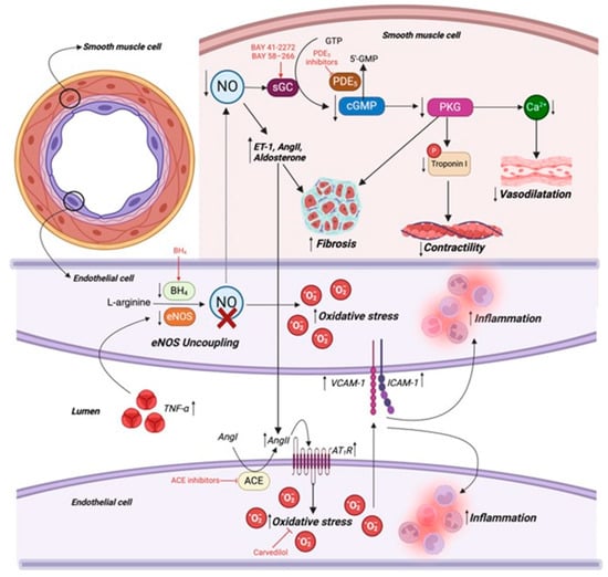 - Janaszak-Jasiecka, A.; Ploska, A.; Wieronska, J.M.; Dobrucki, L.W.; Kalinowski, L. Endothelial dysfunction due to eNOS uncoupling: Molecular mechanisms as potential therapeutic targets. Cell Mol. Biol. Lett. 2023, 28, 21. [Google Scholar] [CrossRef]