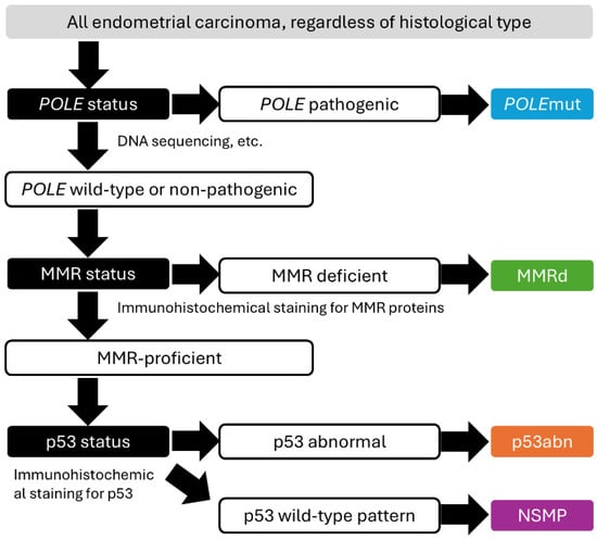 - McConechy, M.K.; Talhouk, A.; Leung, S.; Chiu, D.; Yang, W.; Senz, J.; Reha-Krantz, L.J.; Lee, C.H.; Huntsman, D.G.; Gilks, C.B.; et al. Endometrial Carcinomas with POLE Exonuclease Domain Mutations Have a Favorable Prognosis. Clin. Cancer Res. 2016, 22, 2865–2873. [Google Scholar] [CrossRef]