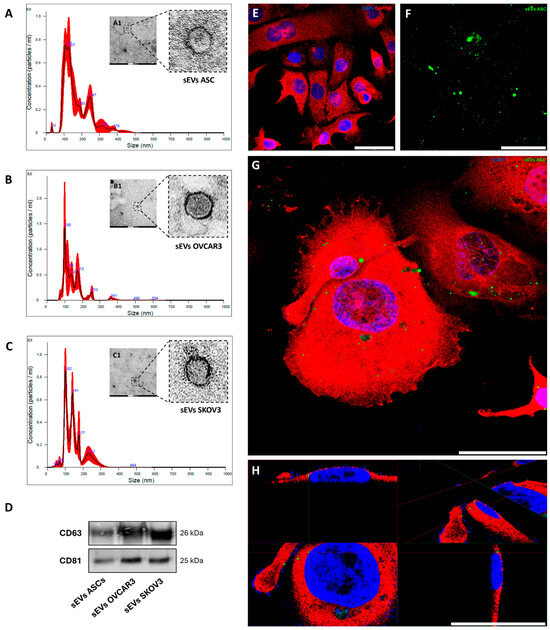 3.1. EVs from ASCs and OC Cell Lines Were Characterized as sEVs and Effectively Internalized During Treatment