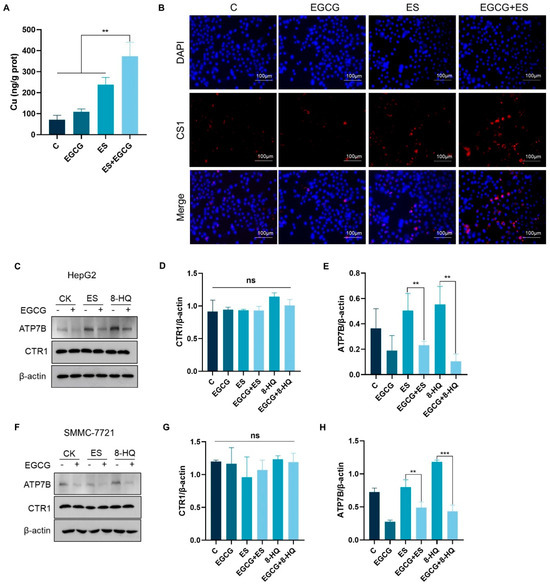 3.3. EGCG Increases Intracellular Copper Accumulation by Down-Regulating ATP7B Expression