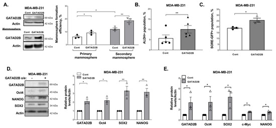 3.2. GATAD2B Regulates Cancer Stem-like Cells Phenotypes