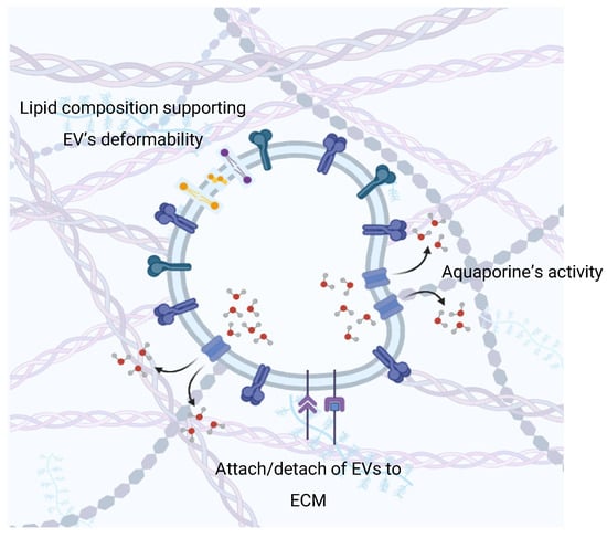 - Debnath, K.; Las Heras, K.; Rivera, A.; Lenzini, S.; Shin, J.-W. Extracellular Vesicle–Matrix Interactions. Nat. Rev. Mater. 2023, 8, 390–402. [Google Scholar] [CrossRef]
