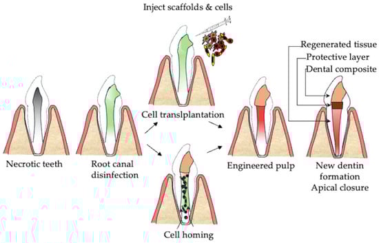 - Nakashima, M.; Iohara, K.; Murakami, M.; Nakamura, H.; Sato, Y.; Ariji, Y.; Matsushita, K. Pulp regeneration by transplantation of dental pulp stem cells in pulpitis: A pilot clinical study. Stem Cell Res. Ther. 2017, 8, 61. [Google Scholar] [CrossRef]