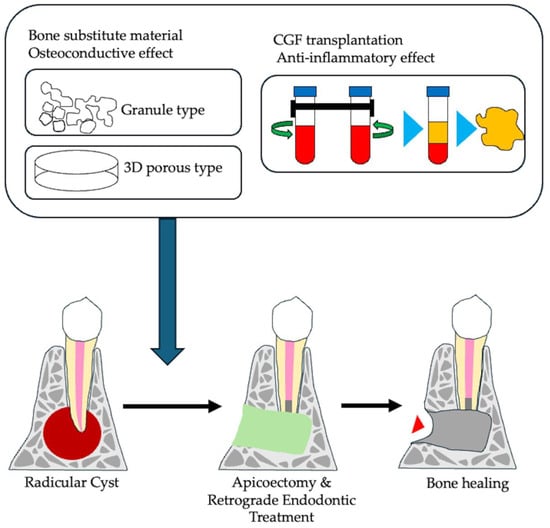 - Yahata, Y.; Handa, K.; Ohkura, N.; Okamoto, M.; Ohshima, J.; Itoh, S.; Kawashima, N.; Tanaka, T.; Sato, N.; Noiri, Y. Autologous concentrated growth factor mediated accelerated bone healing in root-end microsurgery: A multicenter randomized clinical trial. Regen. Ther. 2023, 24, 377–384. [Google Scholar] [CrossRef]