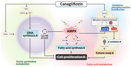 Mechanisms for the canagliflozin-induced suppression of cell proliferation in a human hepatoma cell line. This figure is adopted from [131].