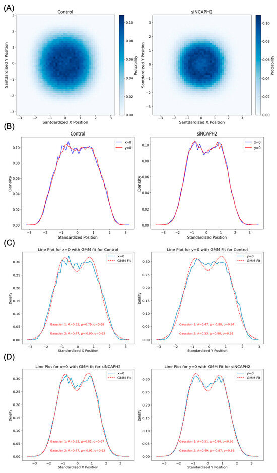 To model centromere localization based on nuclear geometry, an ellipse was fitted to the segmented nucleus. The parameters of the ellipse, specifically the major axis and minor axis , were used to define the spatial boundaries for generating a two-dimensional Gaussian distribution. The Gaussian distribution was centered at the nucleus center , and the probability density function at any point ( was as follows: