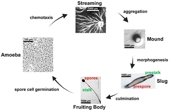 - Kimmel, A.R.; Firtel, R.A. Breaking symmetries: Regulation of Dictyostelium development through chemoattractant and morphogen signal-response. Curr. Opin. Genet. Dev. 2004, 14, 540–549. [Google Scholar] [CrossRef]