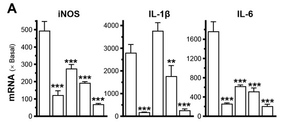 GraphPad Prism 8.0.1 was used here to conduct the data analysis. Statistical significance (* p < 0.05, ** p < 0.01, *** p < 0.001) was determined via one-way ANOVA with Tukey’s test.