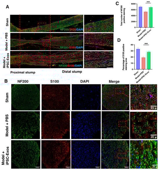 - Pan, J.; Zhao, M.; Yi, X.; Tao, J.; Li, S.; Jiang, Z.; Cheng, B.; Yuan, H.; Zhang, F. Acellular nerve grafts supplemented with induced pluripotent stem cell-derived exosomes promote peripheral nerve reconstruction and motor function recovery. Bioact. Mater. 2022, 15, 272–287. [Google Scholar] [CrossRef]