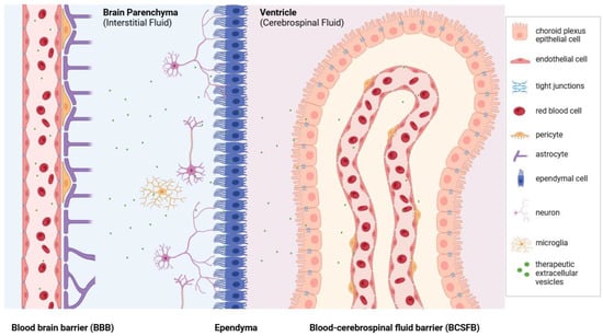 Barriers of drug delivery to the brain. The brain is protected by three physiological barriers: the blood–brain barrier (BBB), the ependyma, and the blood–cerebrospinal fluid barrier (BCSFB). These barriers effectively prevent many therapeutic agents from reaching the brain, complicating treatment efforts for central nervous system (CNS) disorders. However, extracellular vesicles (EVs) have demonstrated the ability to bypass all three of these barriers, making them promising candidates for use as delivery systems for CNS therapeutics.