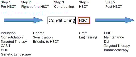 - Bono, R.; Sapienza, G.; Tringali, S.; Rotolo, C.; Patti, C.; Mule, A.; Calafiore, V.; Santoro, A.; Castagna, L. Allogeneic Stem Cell Transplantation in Refractory Acute Myeloid Leukaemia. Cells 2024, 13, 755. [Google Scholar] [CrossRef]
