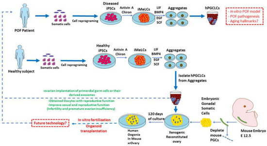 - Yoshino, T.A.-O.; Suzuki, T.A.-O.; Nagamatsu, G.A.-O.; Yabukami, H.; Ikegaya, M.; Kishima, M.; Kita, H.; Imamura, T.A.-O.; Nakashima, K.A.-O.; Nishinakamura, R.; et al. Generation of ovarian follicles from mouse pluripotent stem cells. Science 2021, 373, eabe0237. [Google Scholar] [CrossRef]