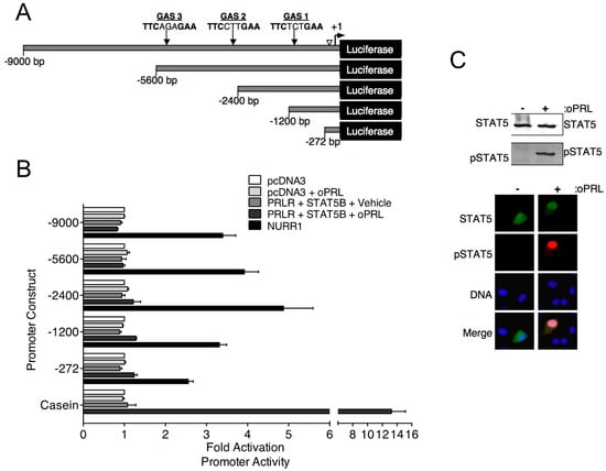 16]. These data led us to hypothesize that PRL may be acting by the canonical PRLR pathway via direct STAT5 binding to one or more of the three putative GAS elements in the
