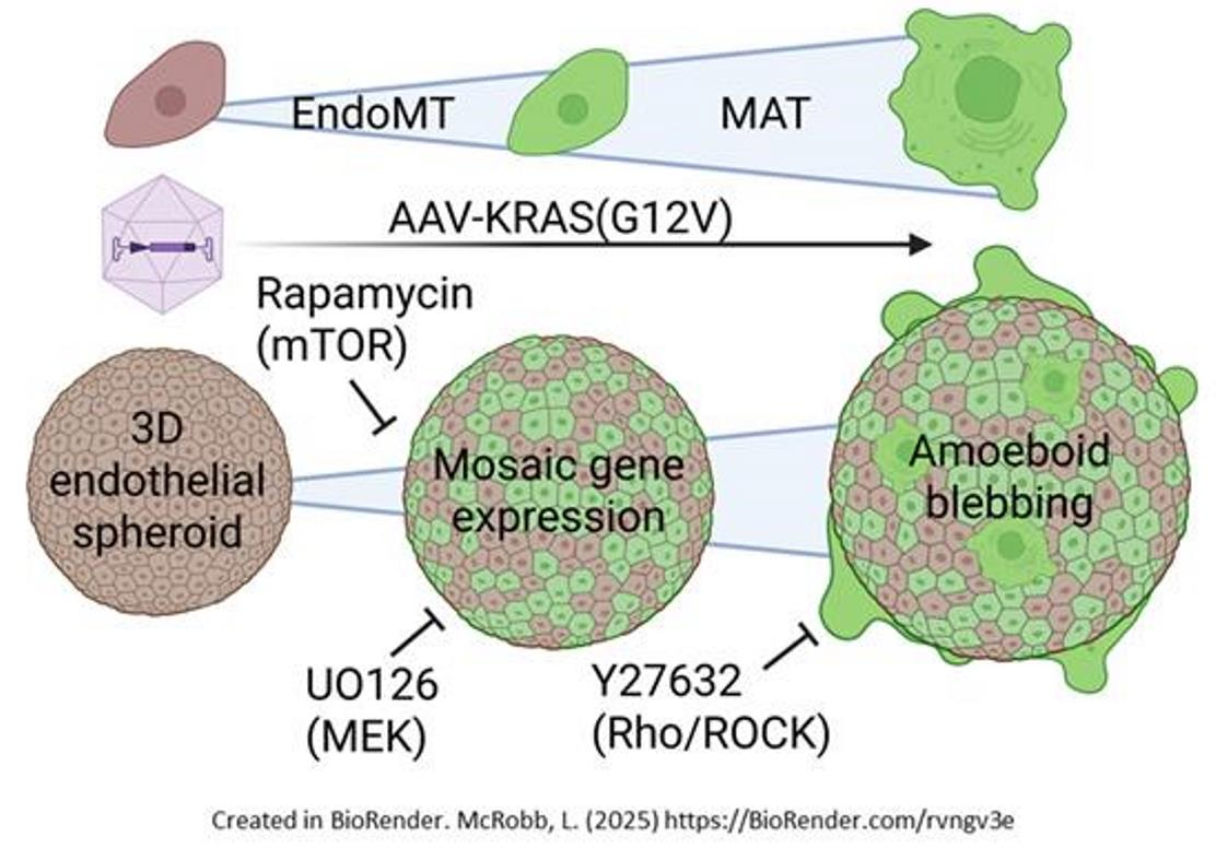 - Expression of KRASG12V can induce blebbing morphologies associated with mesenchymal-to-amoeboid transitions (MAT) and amoeboid-like migration in brain endothelial spheroids after extended culture.