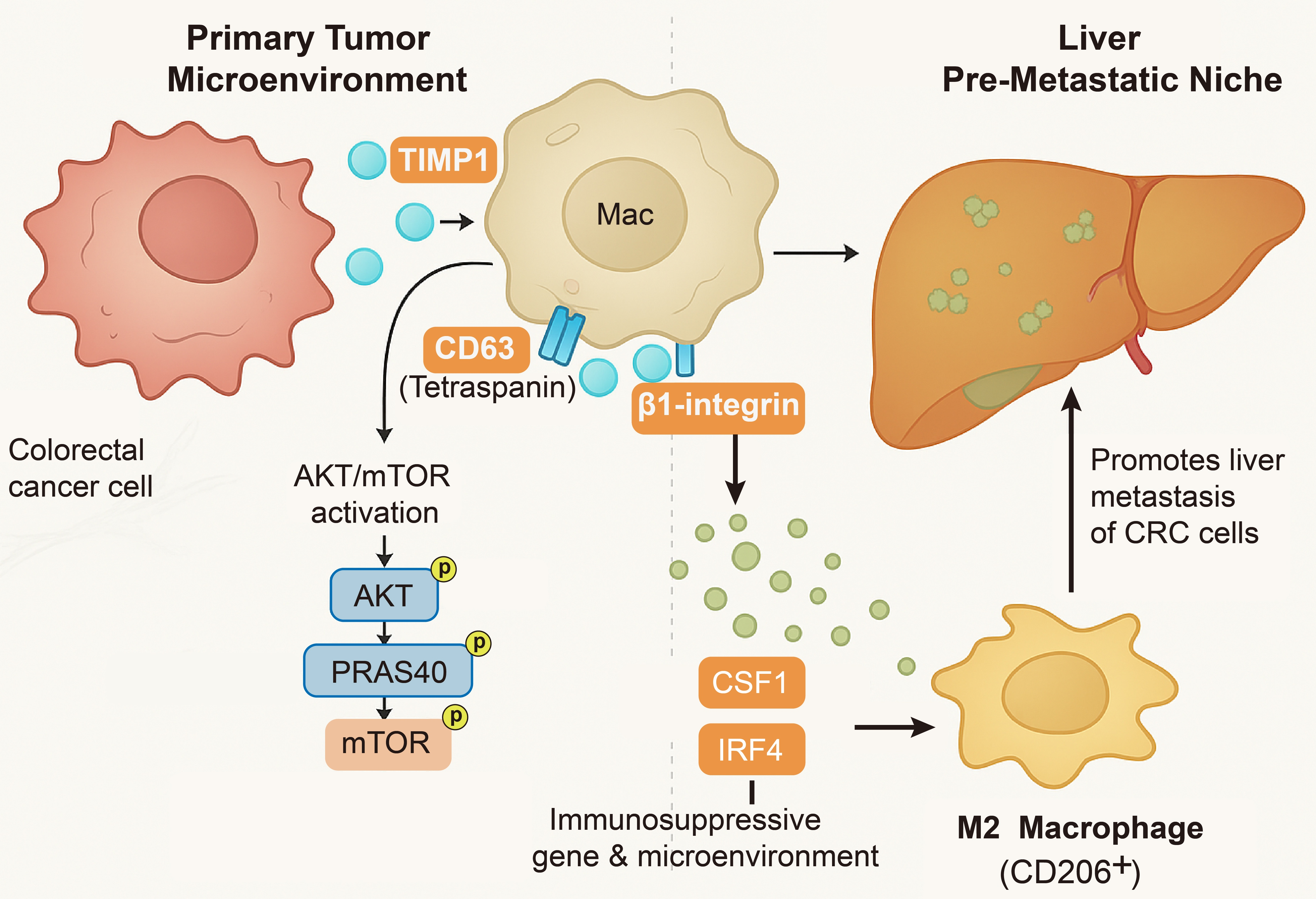 Chicago/Turabian StyleLiu, Jialiang, Liming Zhao, Lin Wang, Guoli Sheng, Pu Cheng, Mingyu Han, Guoxin Li, and Zhaoxu Zheng. 2026. "Integrin-Mediated TIMP1 Signaling Reprograms Liver Macrophages and Accelerates Colorectal Cancer Metastasis" Cells 15, no. 1: 29. https://doi.org/10.3390/cells15010029