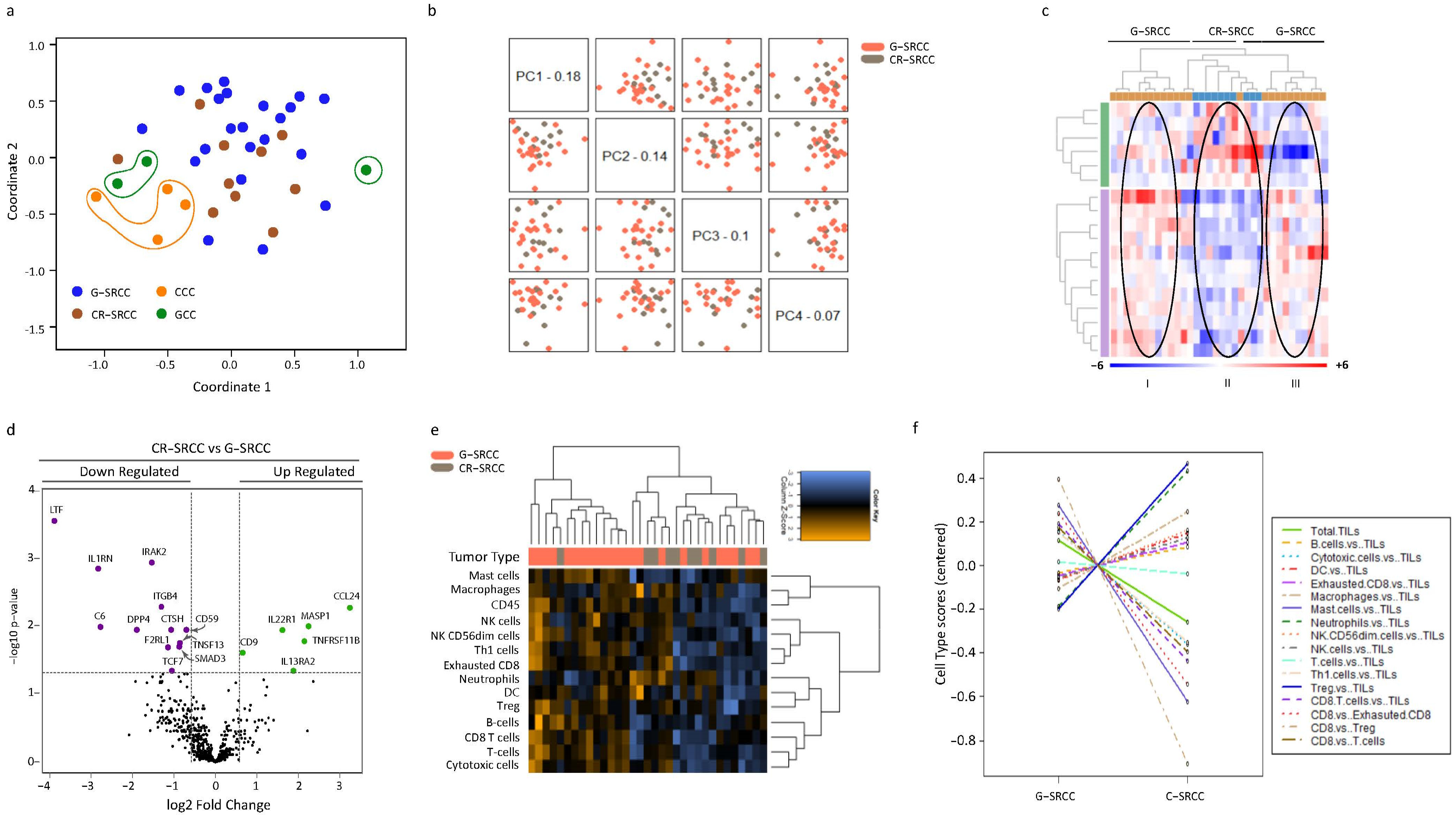 - Overall, our descriptive study highlights pathways (IL-13, complement) that may be targeted for drug development in SRCC.
