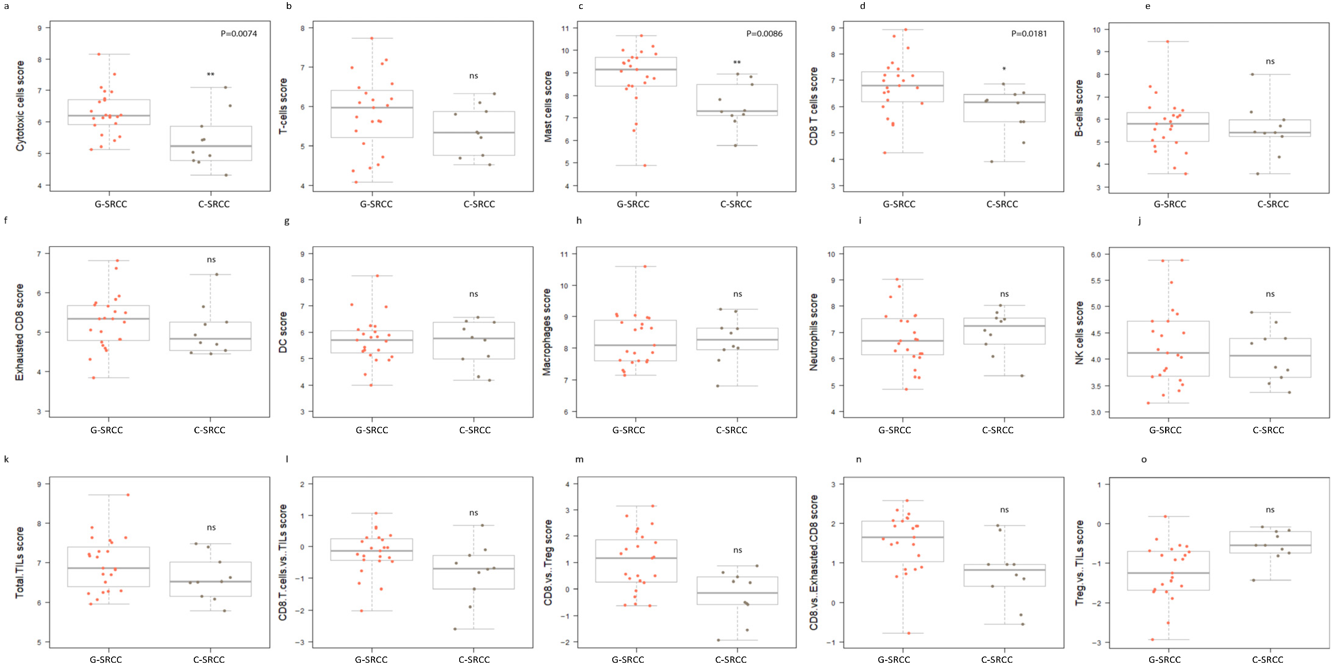 - The immune components of gastric and colorectal SRCCs are distinct from their corresponding non-SRCC counterparts.