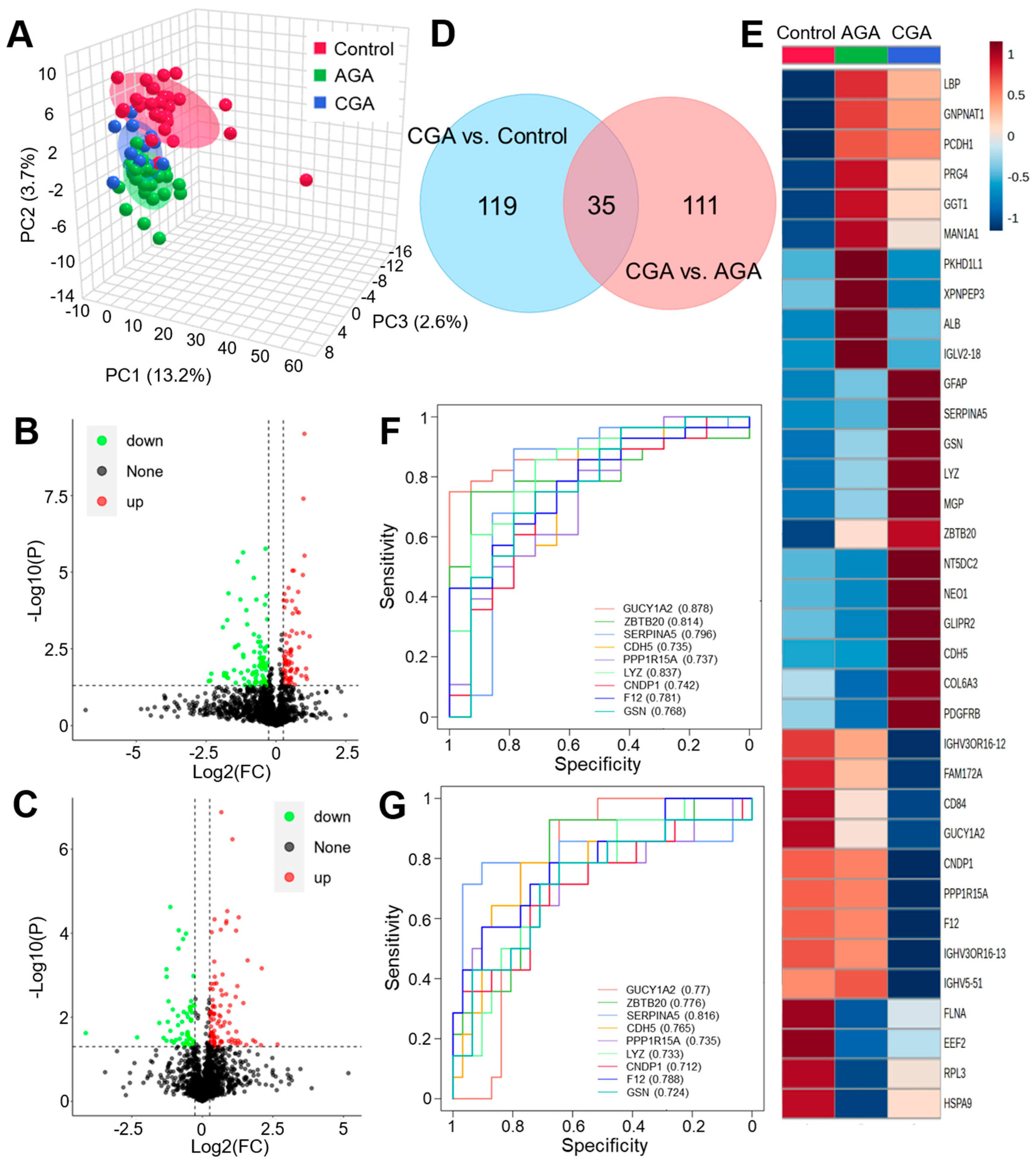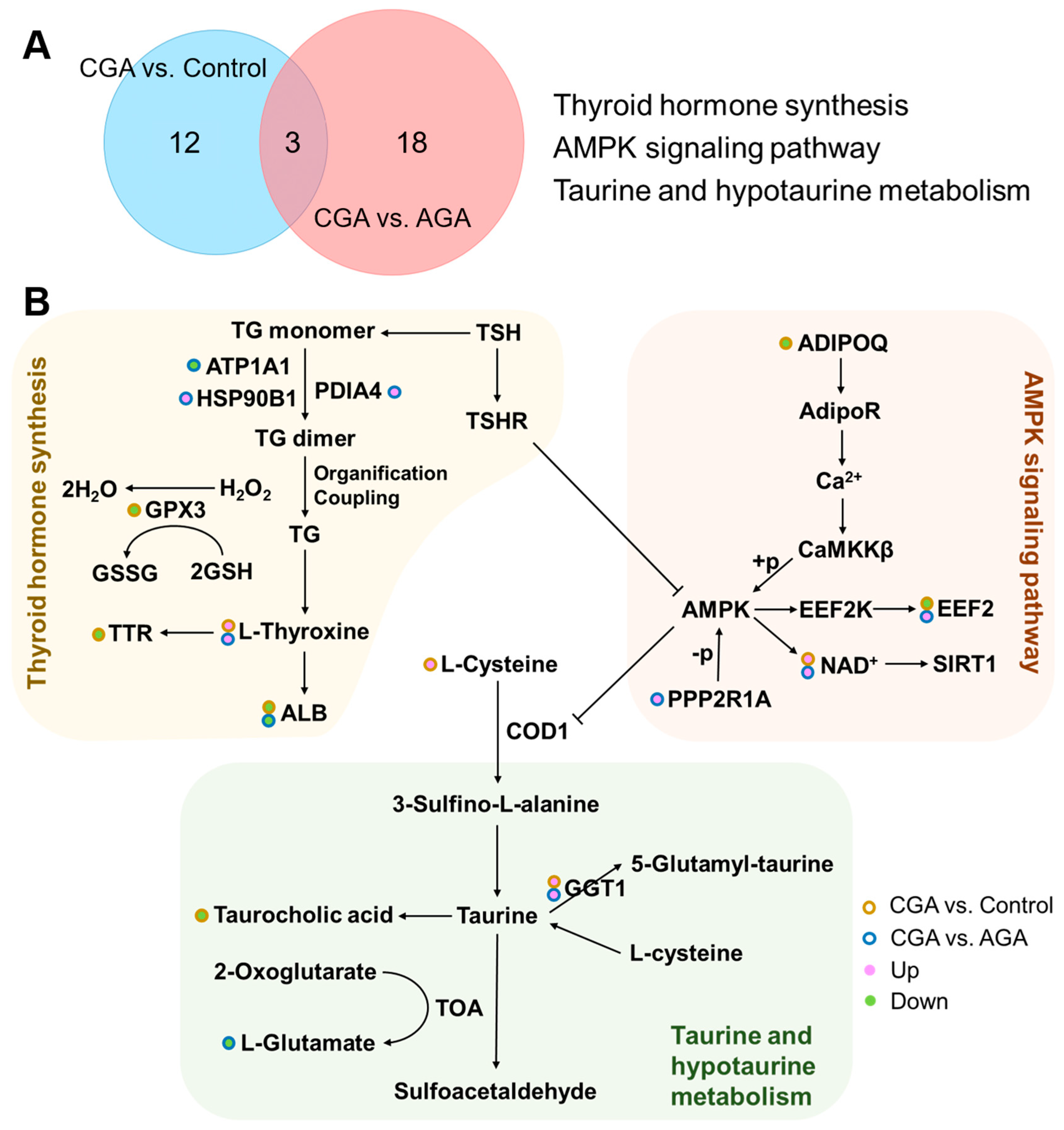 | No. | Protein | CGA vs. Control | CGA vs. AGA | Up. Down | ||||||