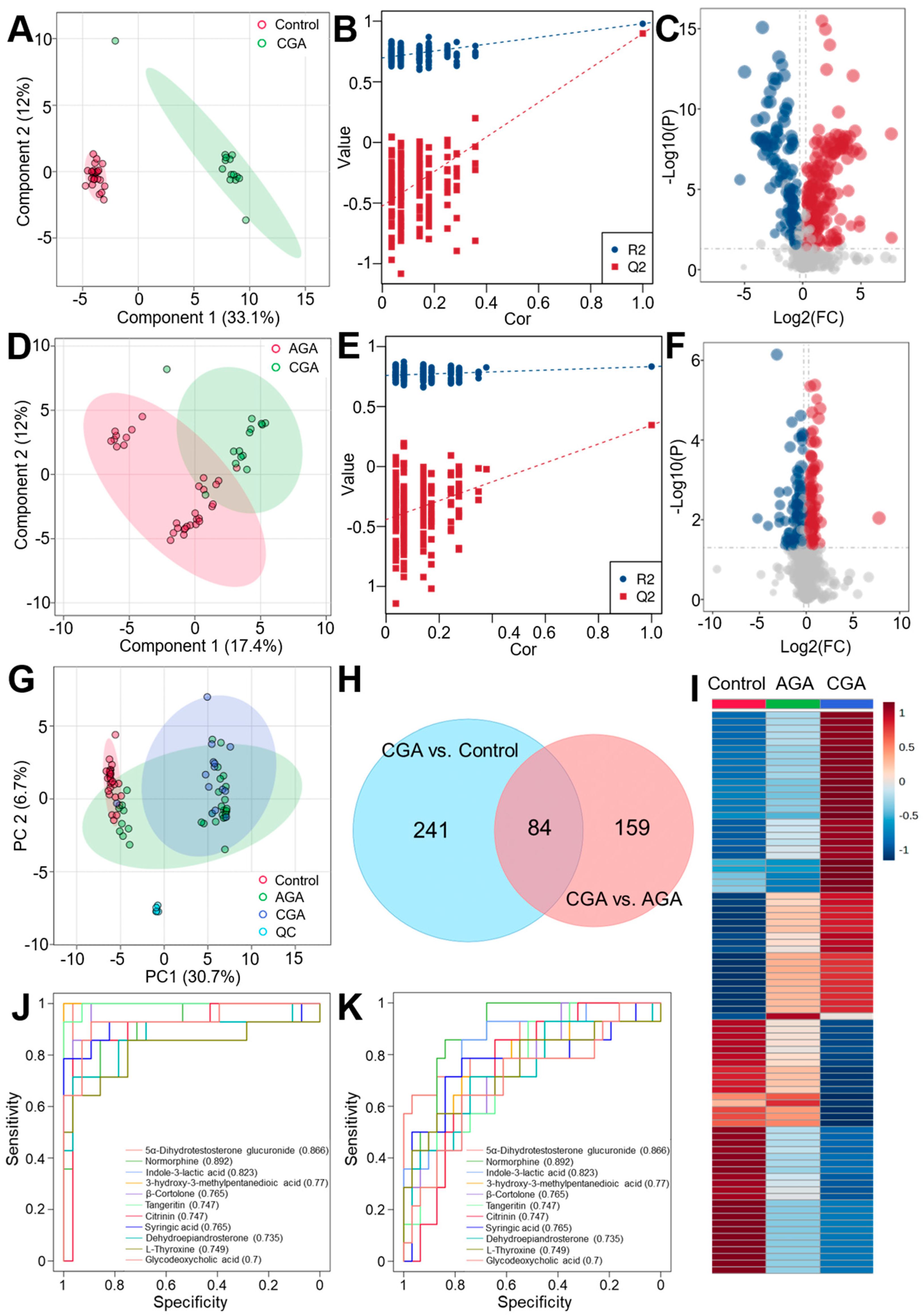 | No. | Metabolite | CGA vs. Control | CGA vs. AGA | |||||||||
