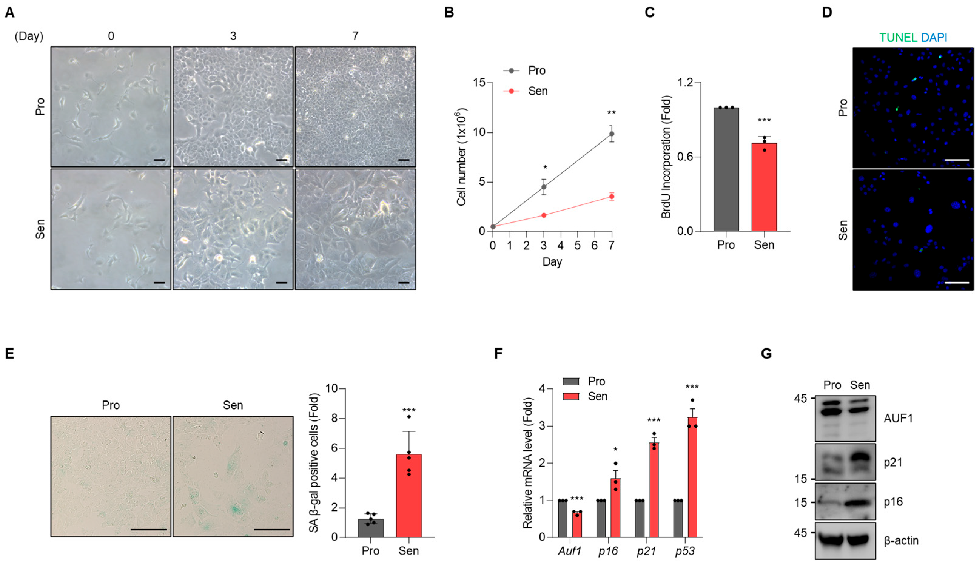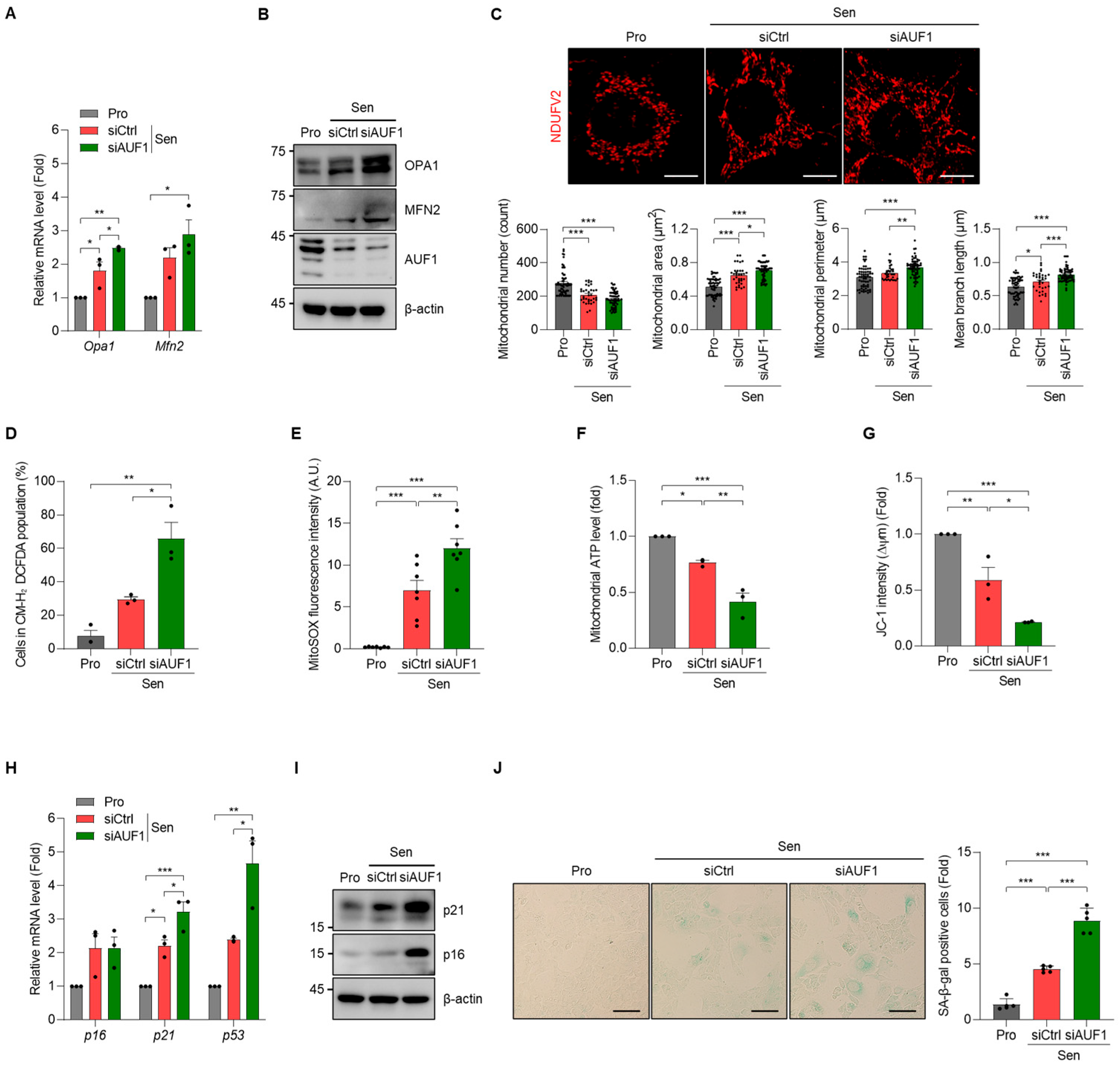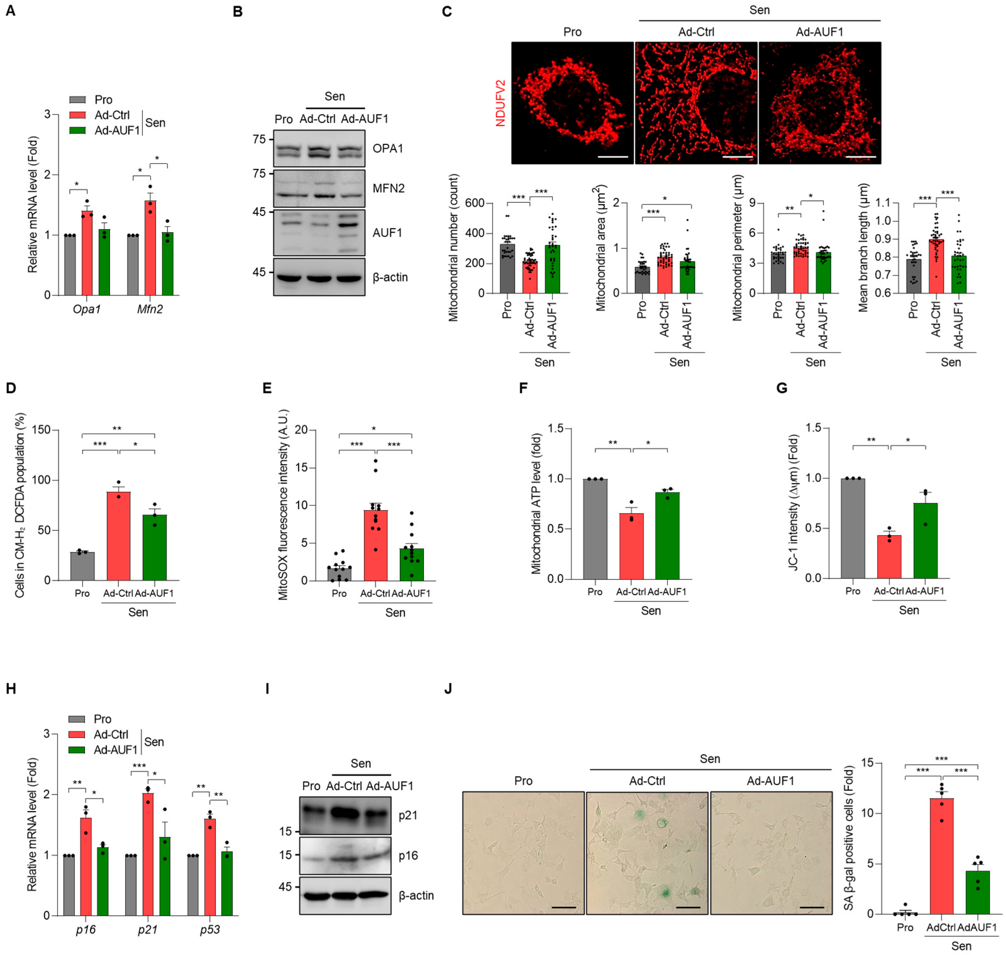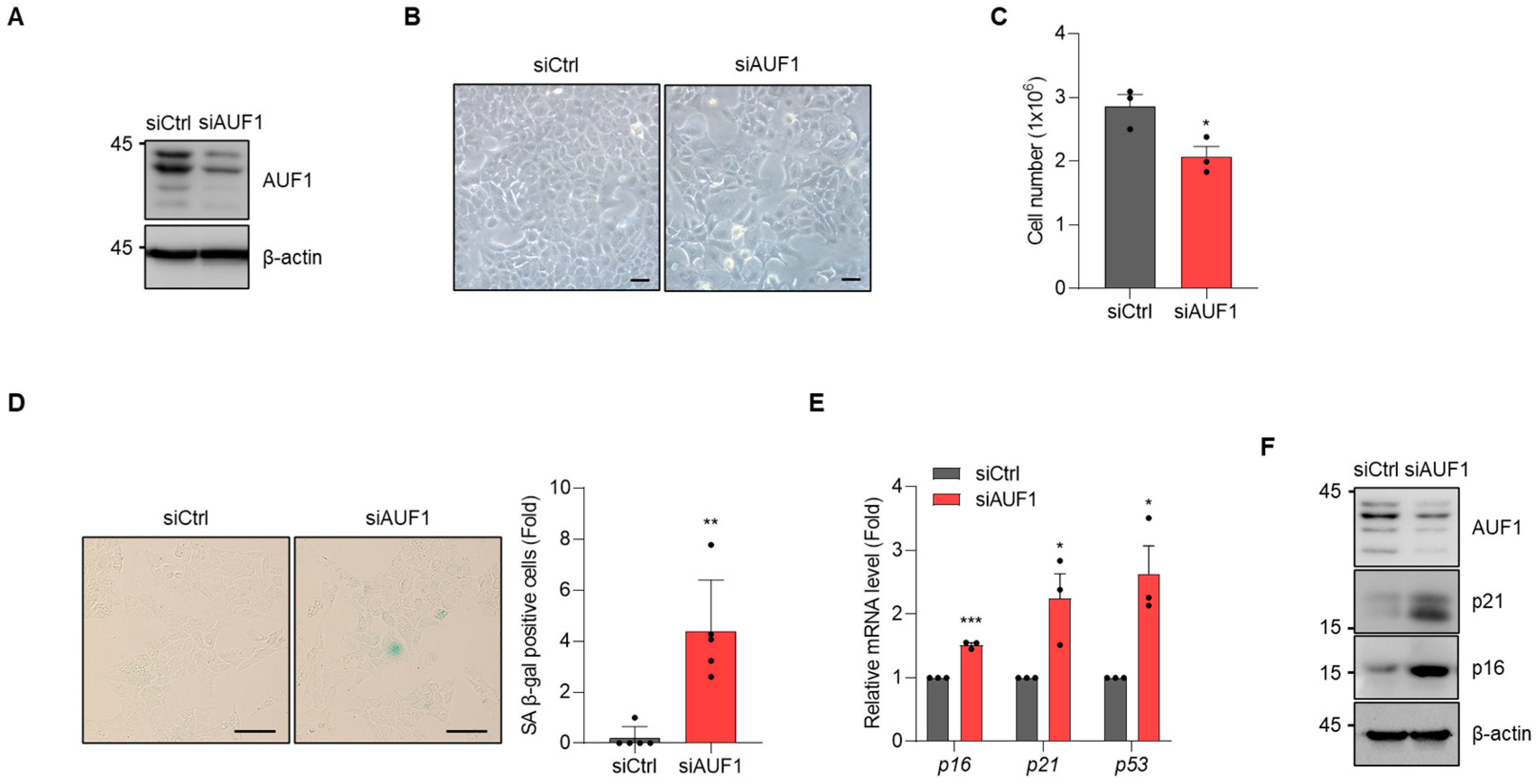 APA StyleJung, M., Han, S., Ryu, S., Cha, S., Sim, Y. E., Jung, S. H., Tak, H., Kim, W., & Lee, E. K. (2026). AUF1 Restrains Hepatocyte Senescence by Maintaining Mitochondrial Homeostasis in AML12 Hepatocyte Model. Cells, 15(1), 48. https://doi.org/10.3390/cells15010048