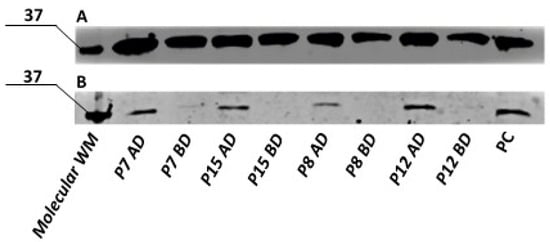 Semi-quantitative analysis using Western blotting revealed the presence of UCP1 (approximately 33 kDa) in commercial adipose-derived stem cells subjected to differentiation, regardless of the protocol used (Figure 13B). No UCP1 was detected in control cells-ADSCs that were not subjected to differentiation, cultured until confluence (control), or cultured throughout the differentiation period (control 21D). GAPDH protein (approximately 36 kDa) was used as the endogenous control (Figure 13A).