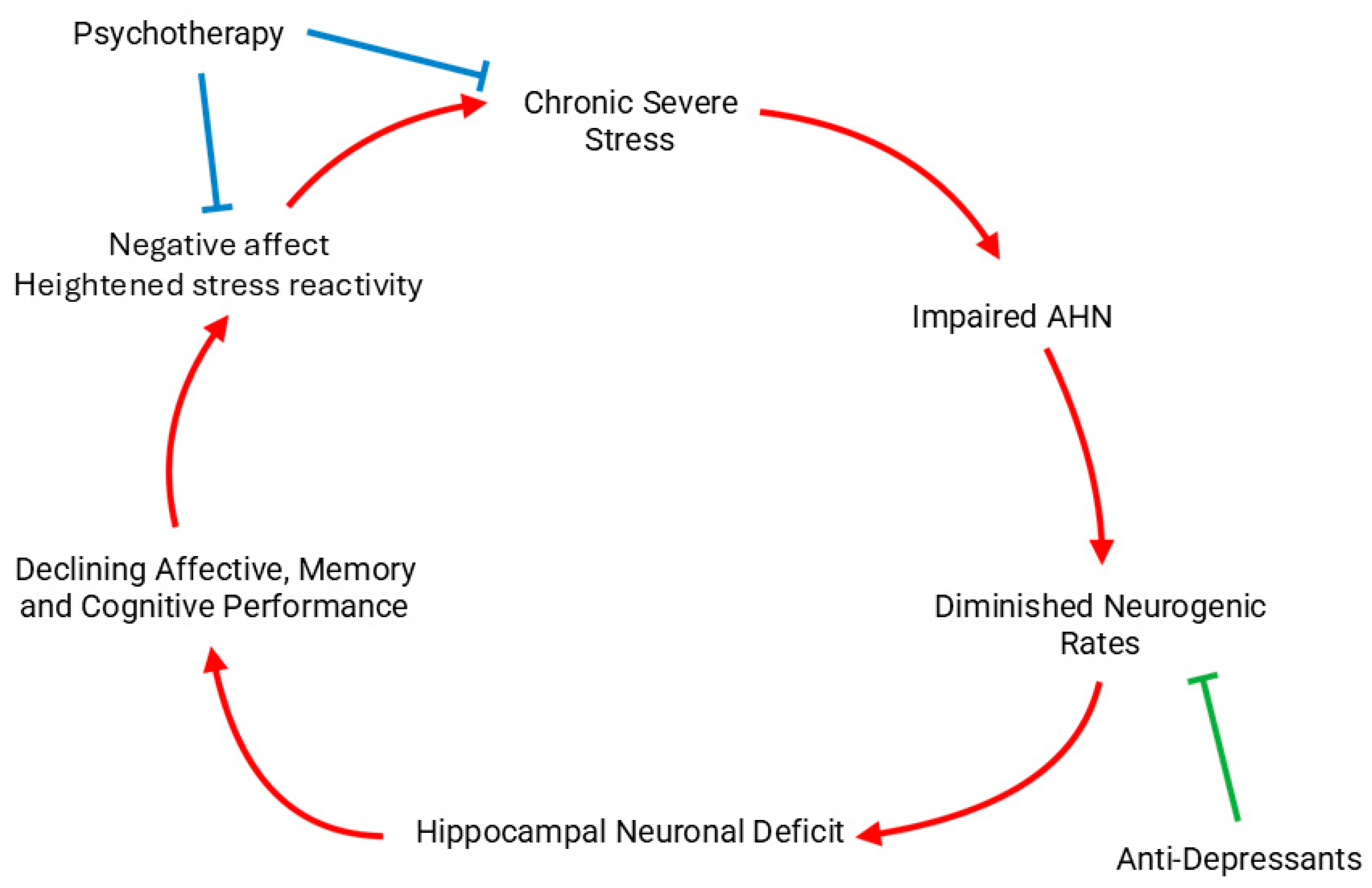 - Levone, B.R.; Cryan, J.F.; O’Leary, O.F. Role of adult hippocampal neurogenesis in stress resilience. Neurobiol. Stress 2015, 1, 147–155. [Google Scholar] [CrossRef] [PubMed]