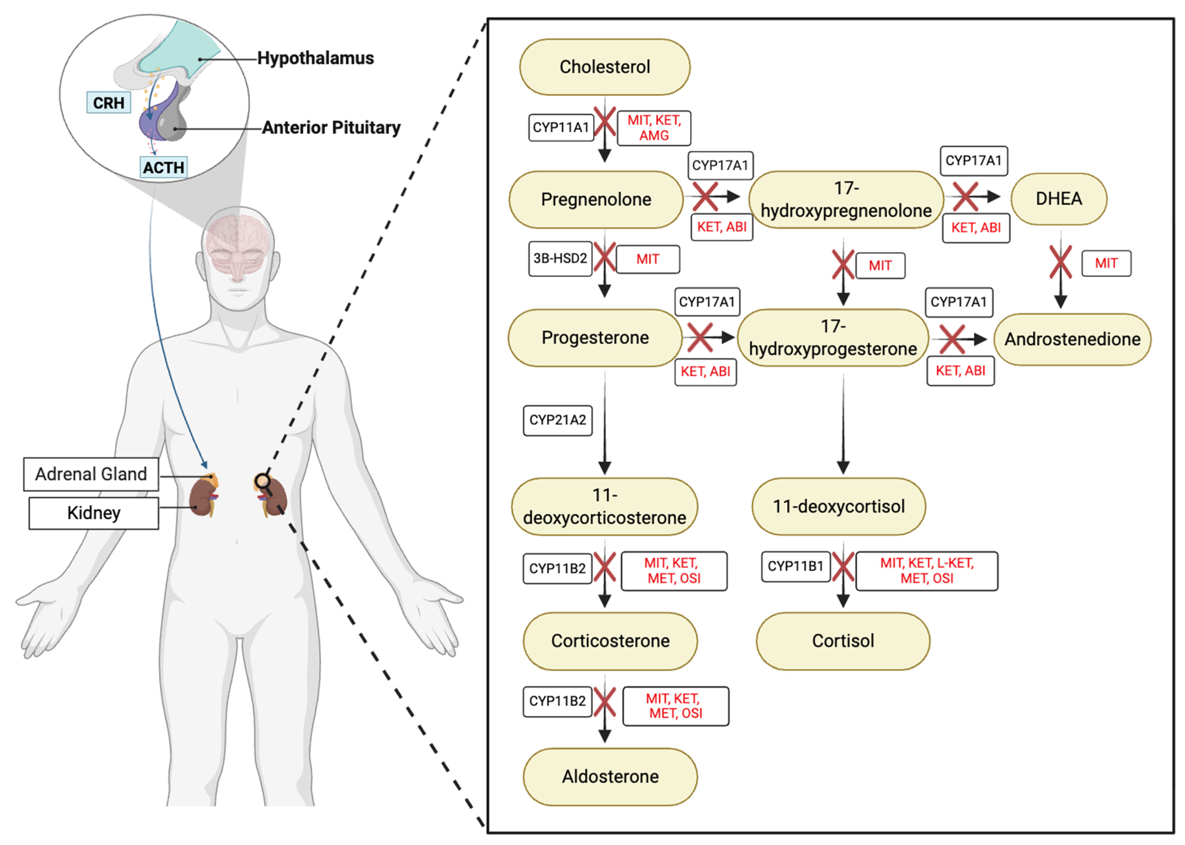 - Fleseriu, M.; Castinetti, F. Updates on the role of adrenal steroidogenesis inhibitors in Cushing’s syndrome: A focus on novel therapies. Pituitary 2016, 19, 643–653. [Google Scholar] [CrossRef] [PubMed]