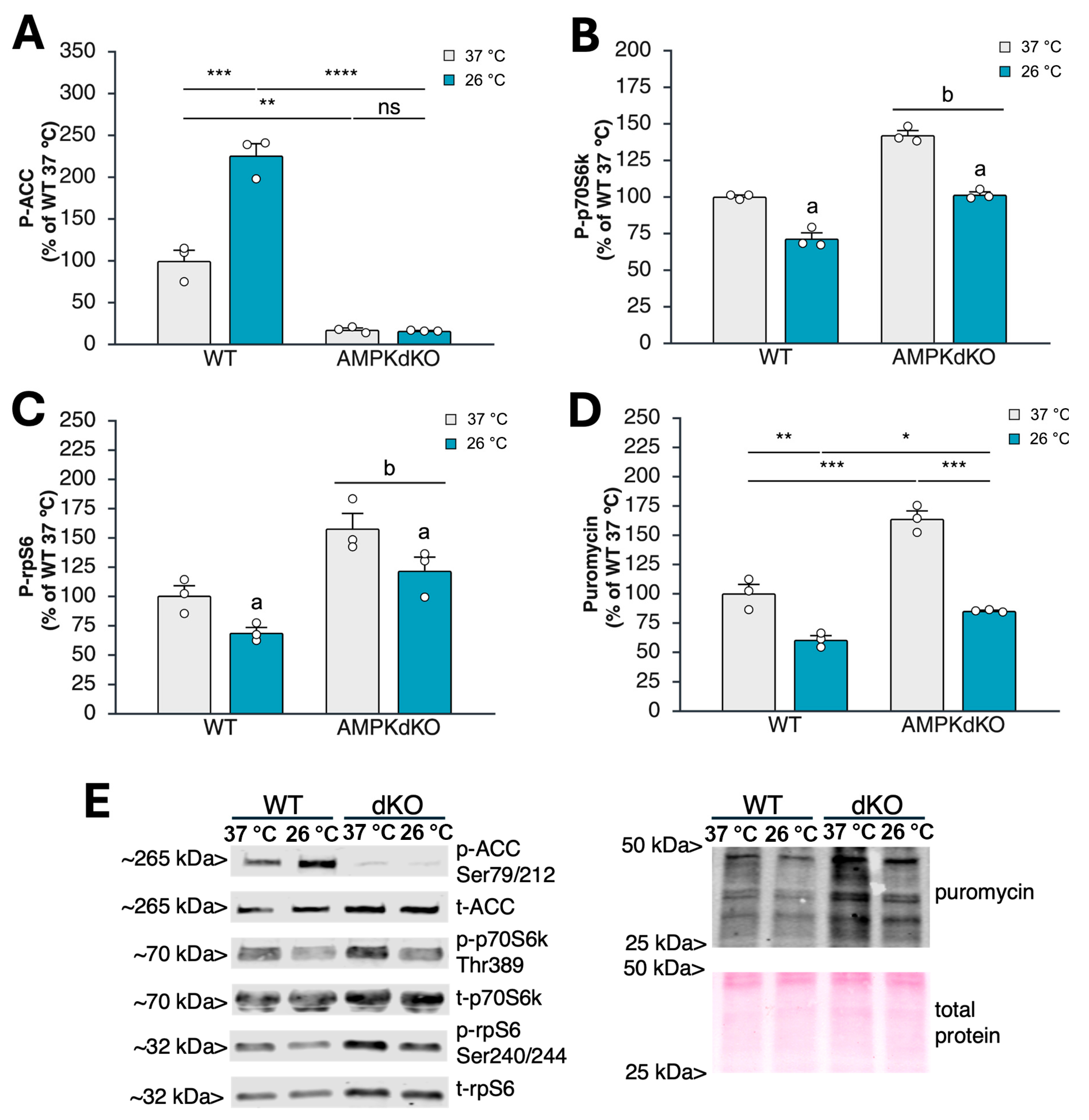 Chicago/Turabian StyleSung, Benjamin Y., Eliza J. Ford, Daniel J. Foster, Kyler J. Fullmer, Cosette Cromwell, Benoit Viollet, and David M. Thomson. 2026. "Acute Cold Exposure Cell-Autonomously Reduces mTORC1 Signaling and Protein Synthesis Independent of AMPK" Cells 15, no. 1: 65. https://doi.org/10.3390/cells15010065