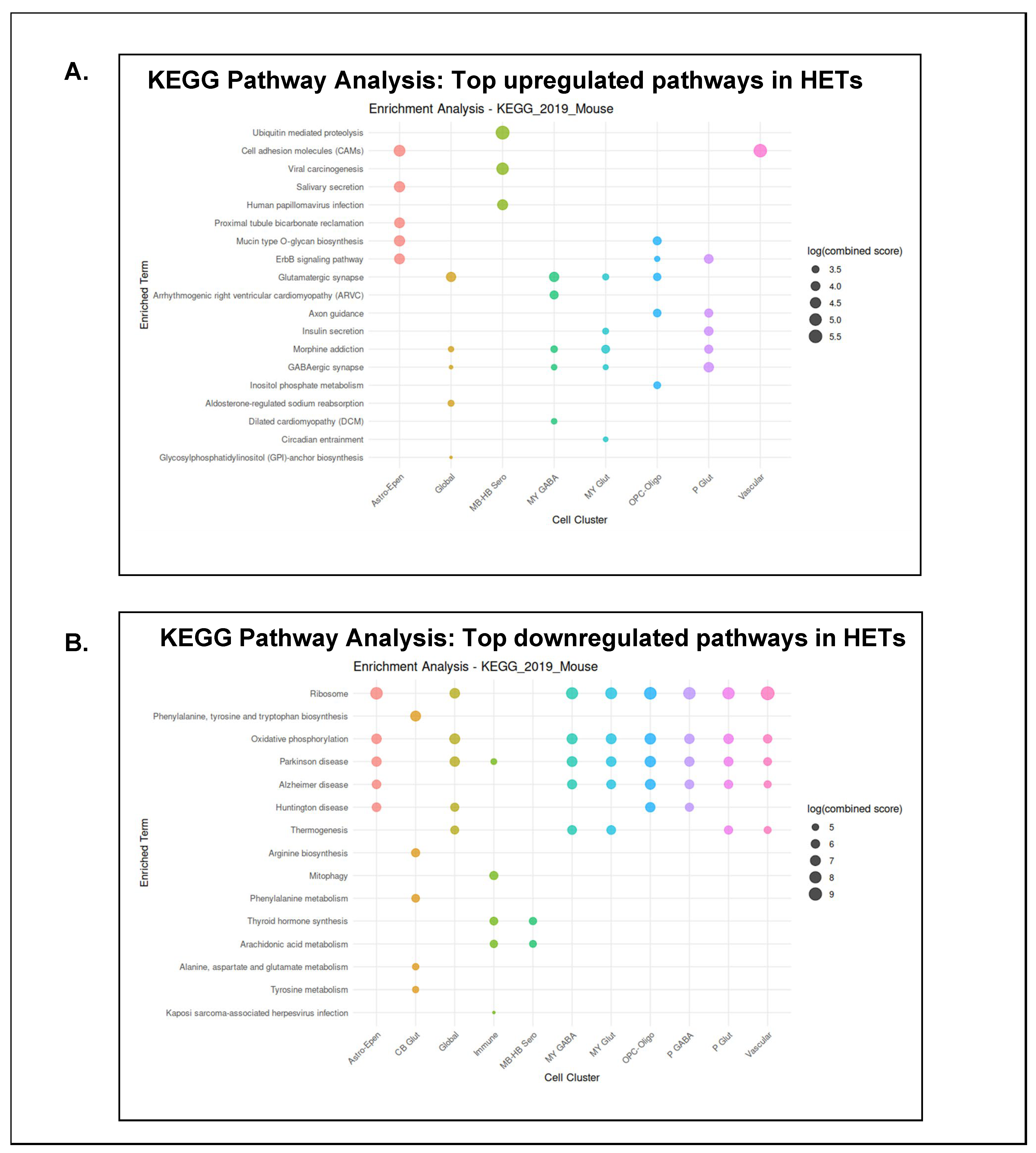 3.6. Genes Associated with Neurotransmission, Protein Translation, and Cellular Respiration Are Altered in the Brainstem of P40–50 HETs