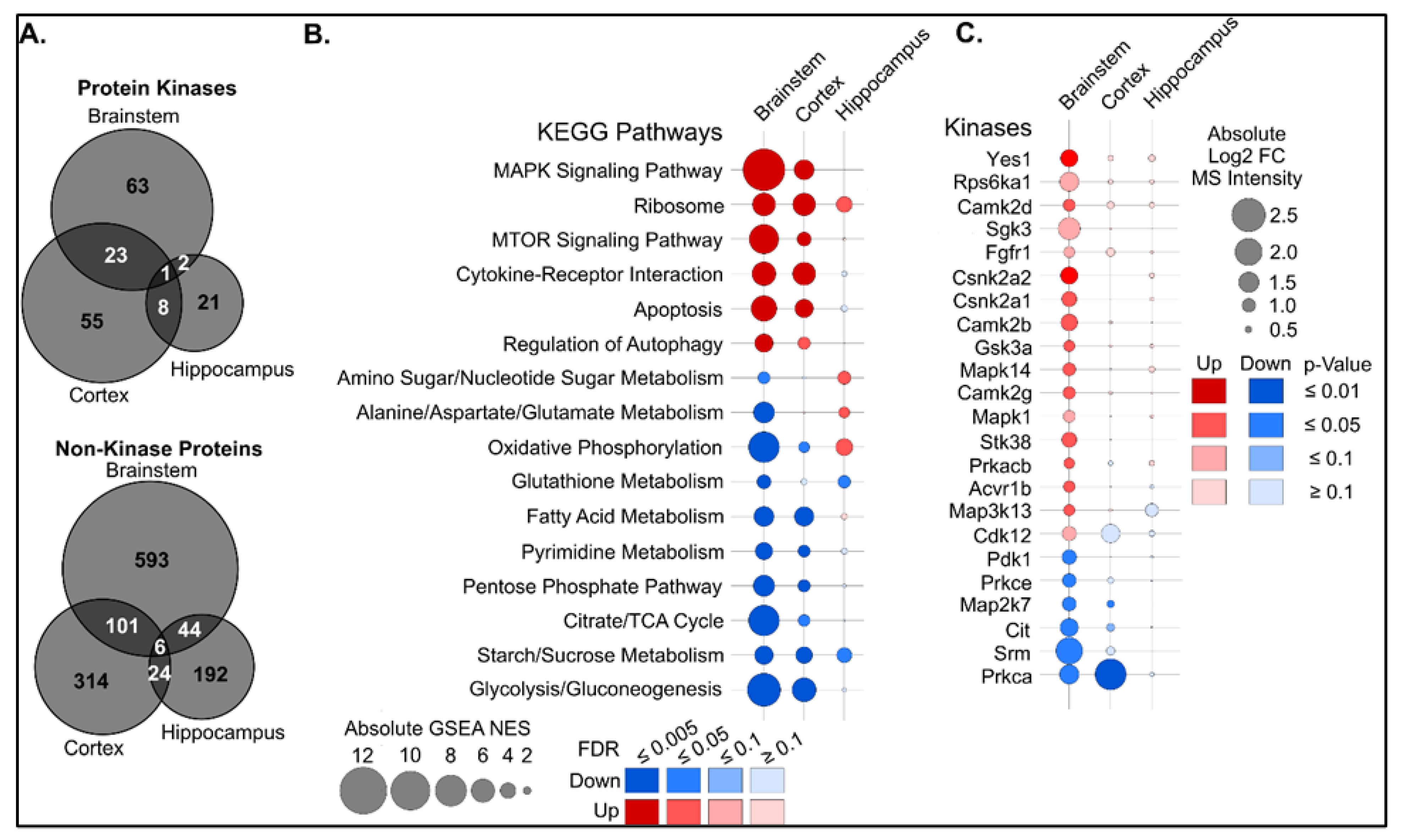 - Several druggable protein kinases are altered in the brainstem of HET mice.