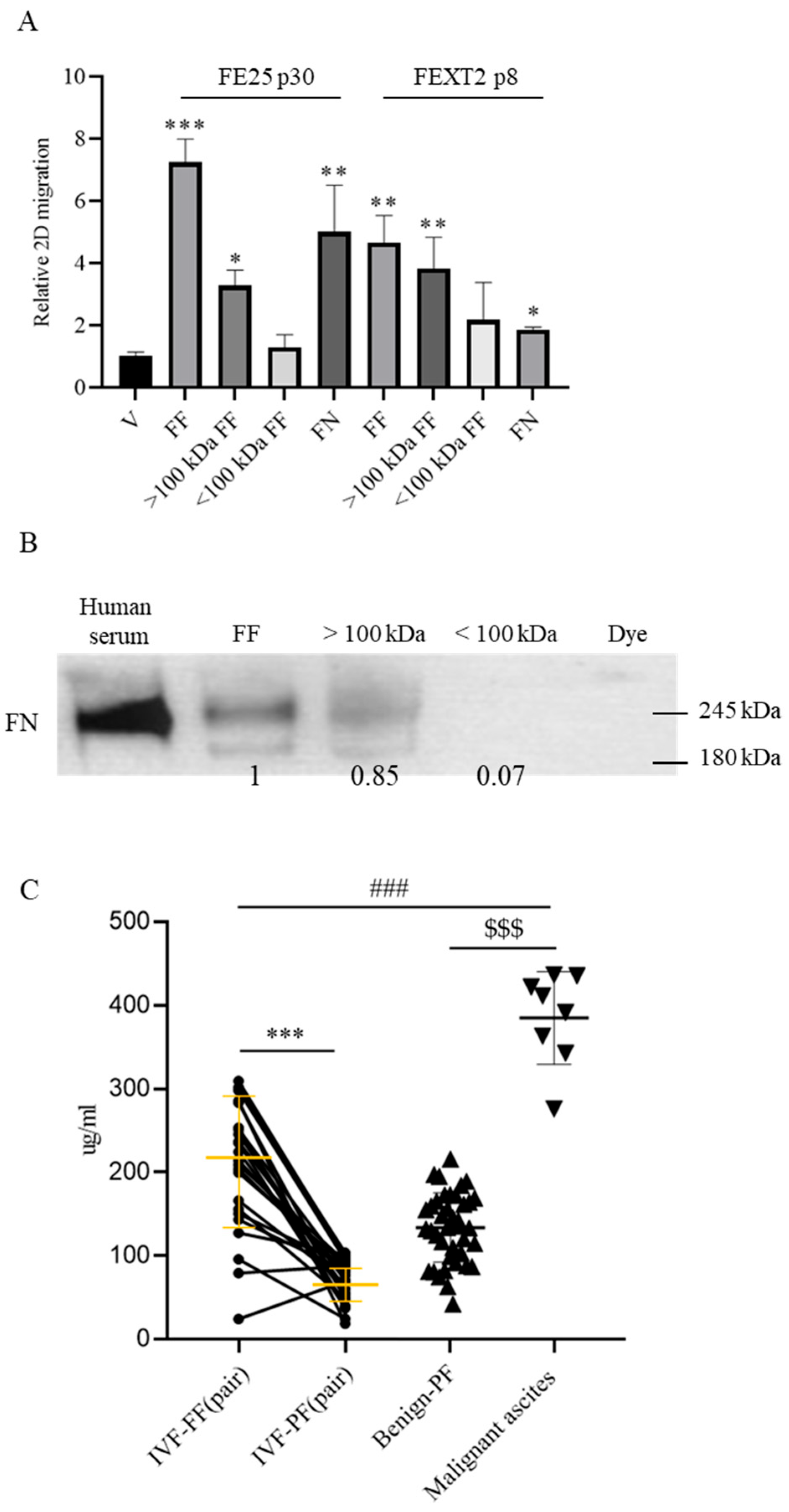 3.1. High Molecular Weight Components, Including FN, in FF Promote Migration of HGSC Precursor Cells