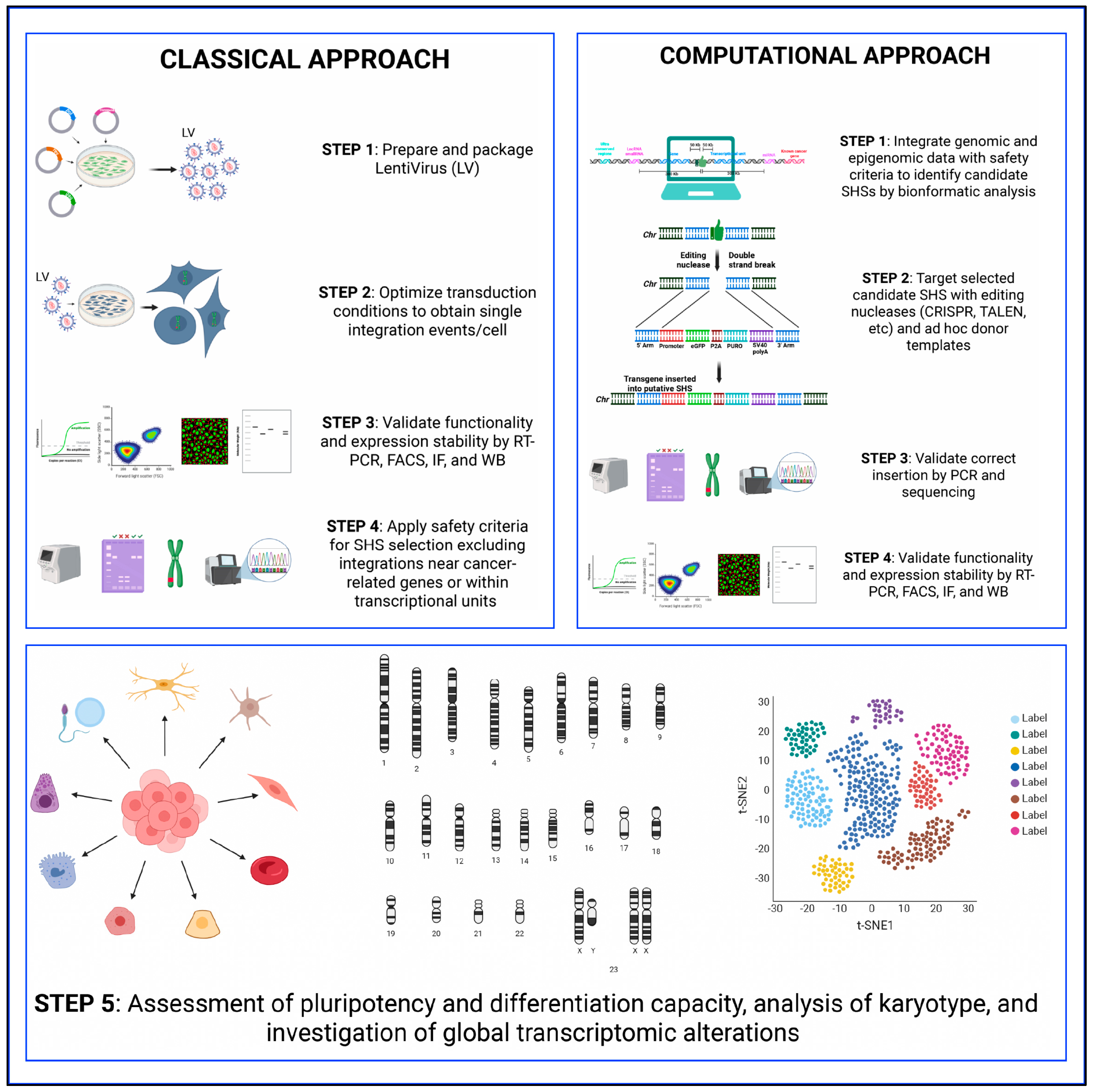 - Shrestha, D.; Bag, A.; Wu, R.; Zhang, Y.; Tang, X.; Qi, Q.; Xing, J.; Cheng, Y. Genomics and epigenetics guided identification of tissue-specific genomic safe harbors. Genome Biol. 2022, 23, 199. [Google Scholar] [CrossRef] [PubMed]