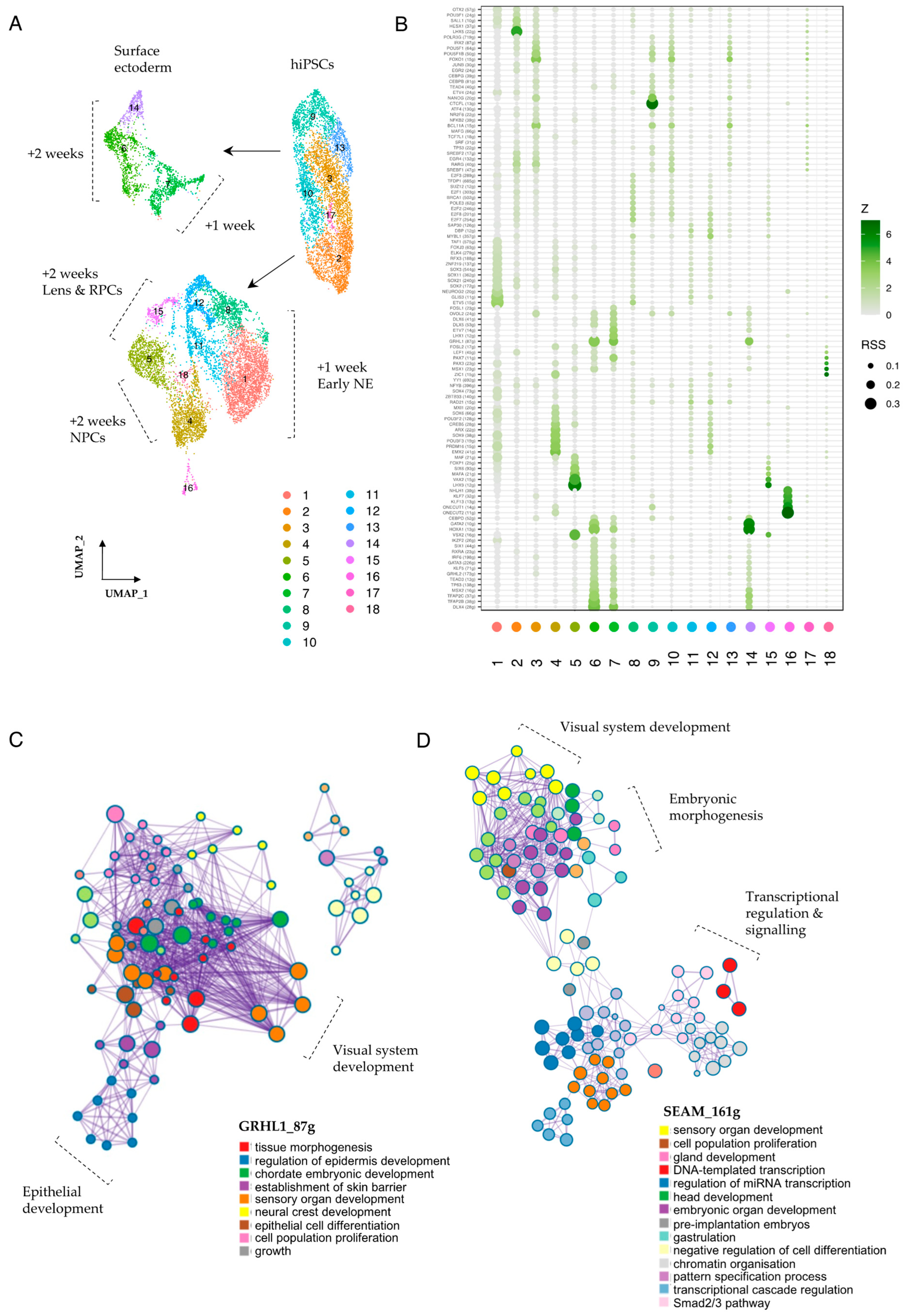 3.5. Transcriptional Regulators and Their Networks Define Early Ocular Cell Identity